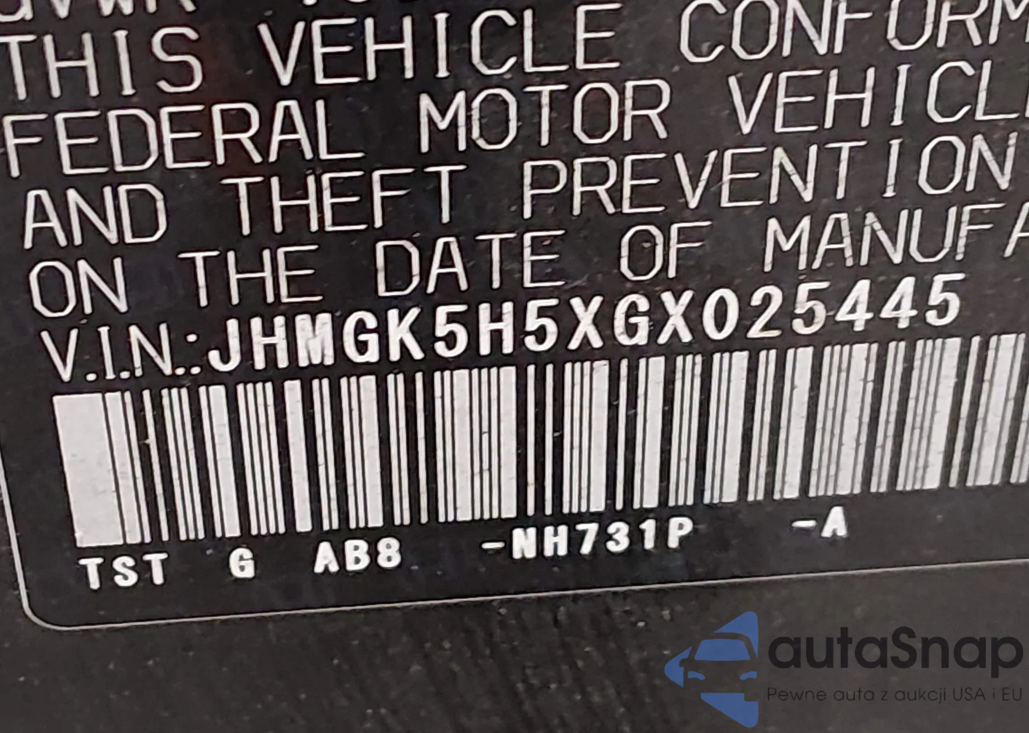 • VIN JHMGK5H5XGX025445