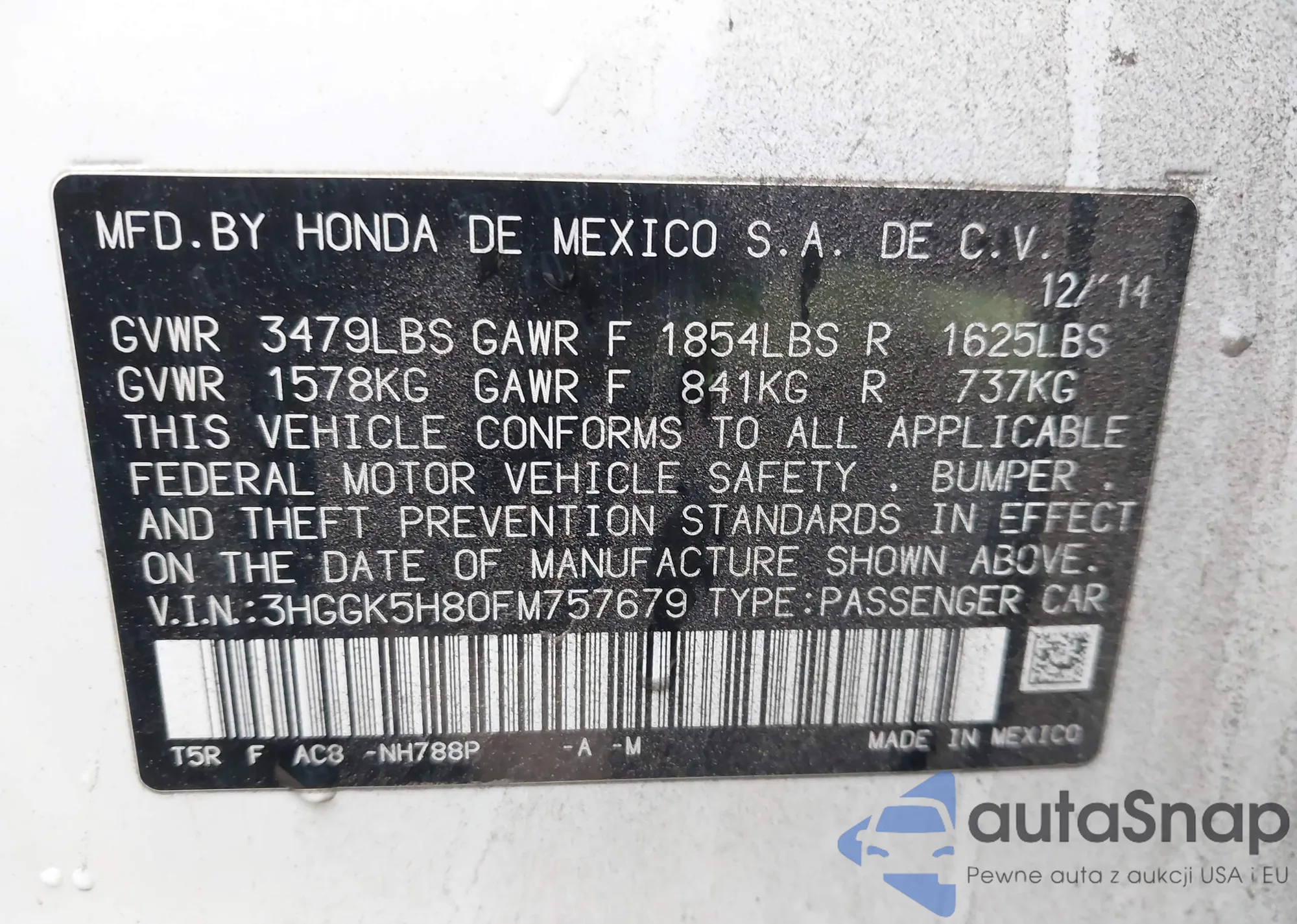 • VIN 3HGGK5H80FM757679