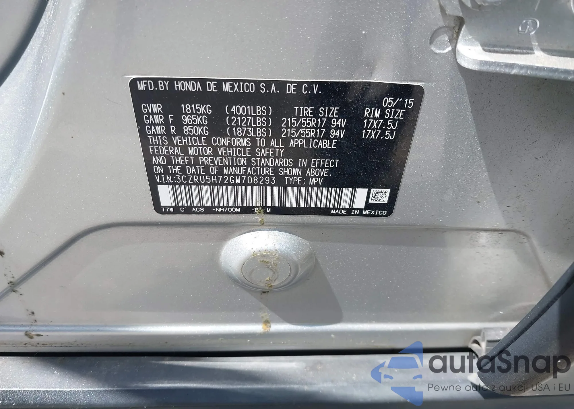 • VIN 3CZRU6H35HM702038