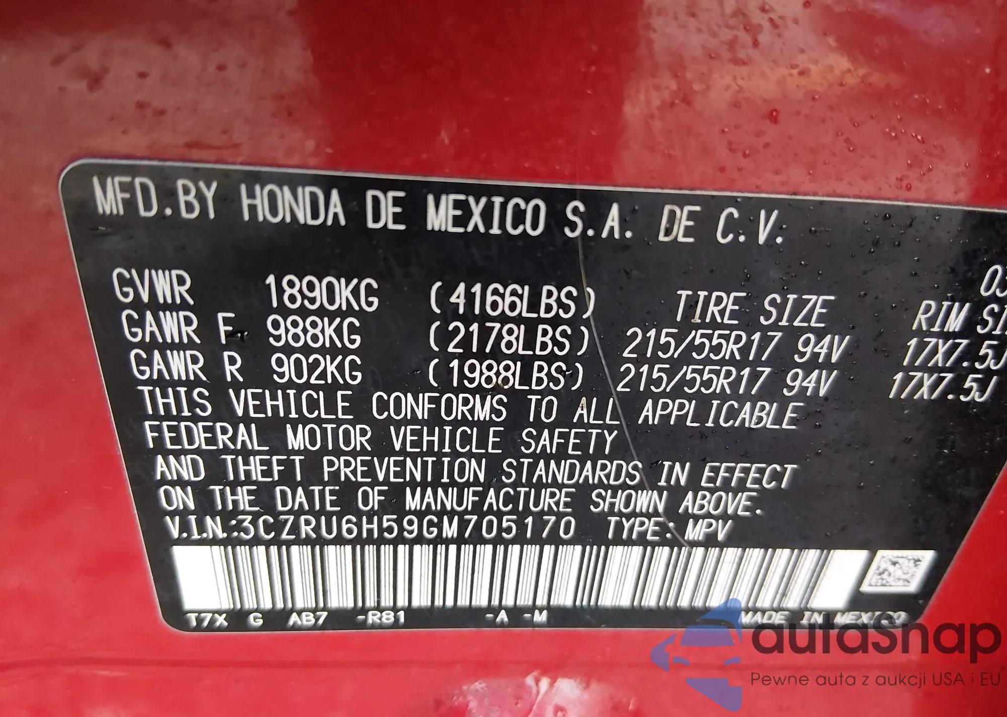 • VIN 3CZRU6H59GM705170