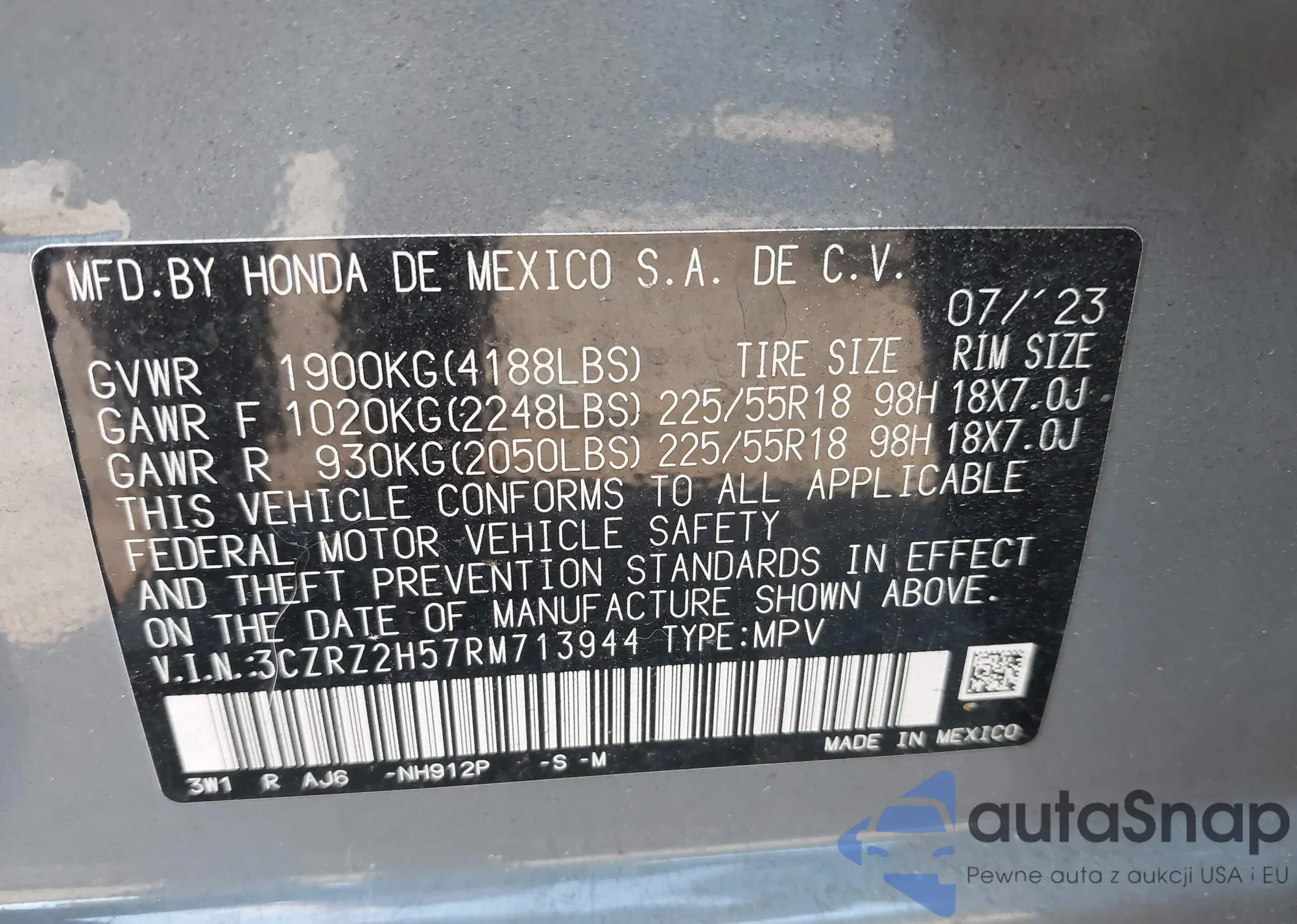 • VIN 3CZRZ2H57RM713944