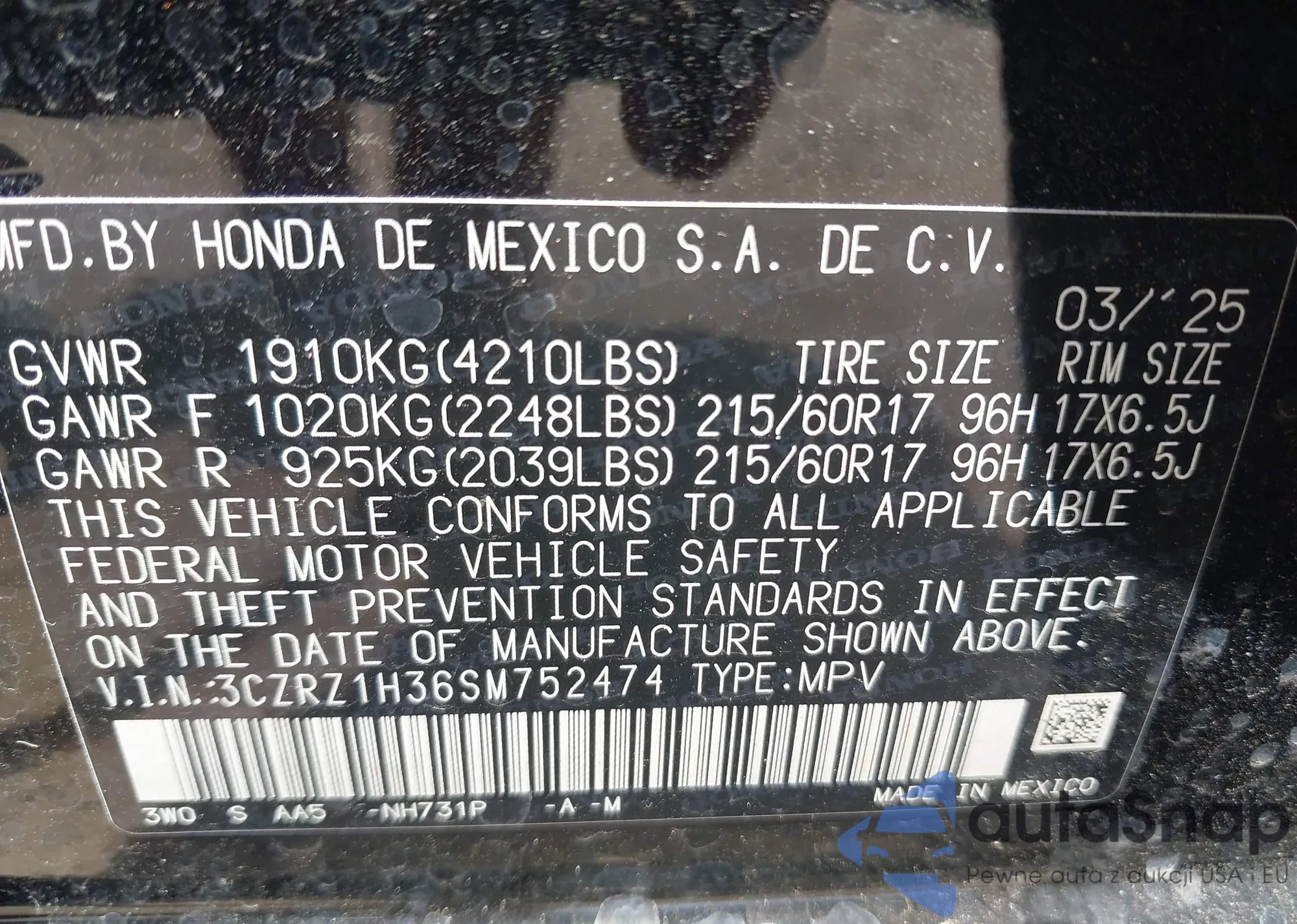 • VIN 3CZRZ1H36SM752474