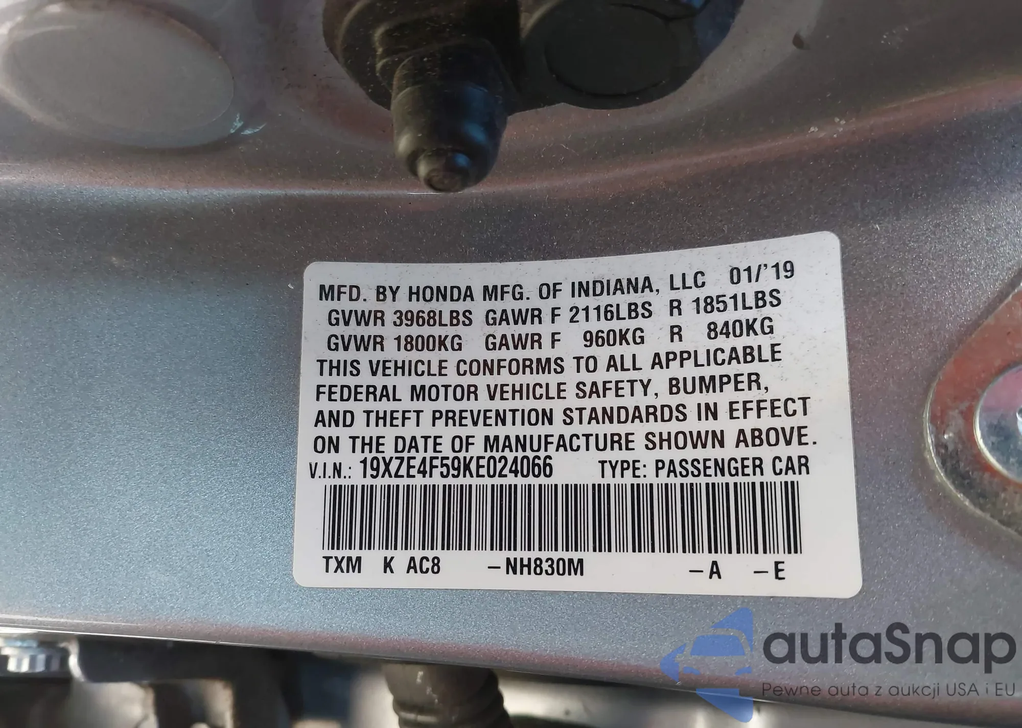 • VIN 19XZE4F59KE024066