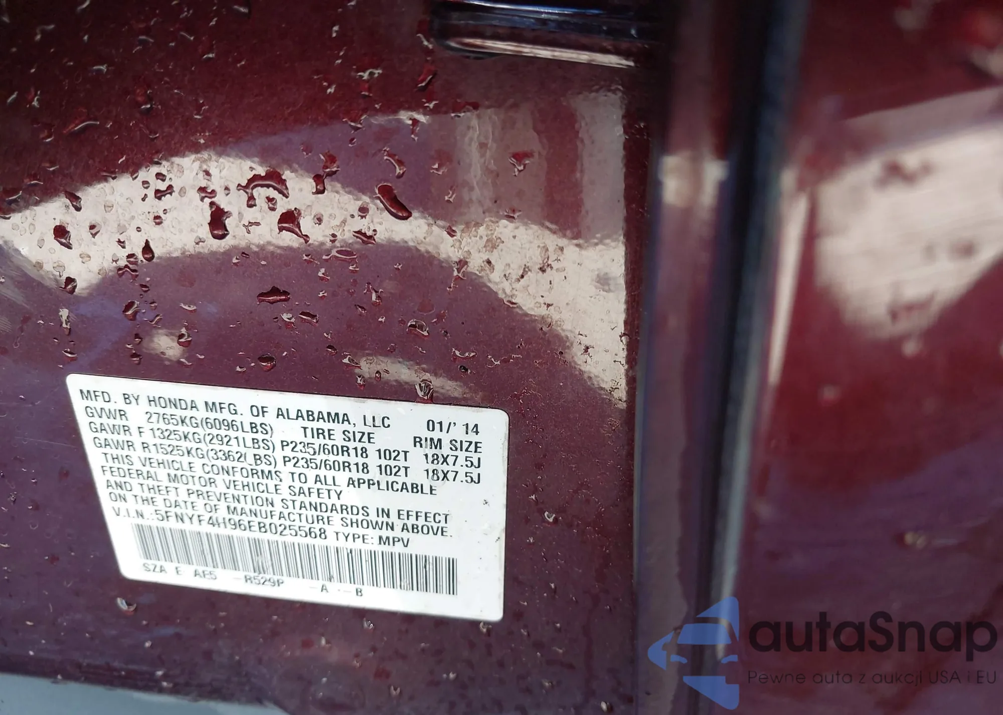 • VIN 5FNYF4H96EB025568