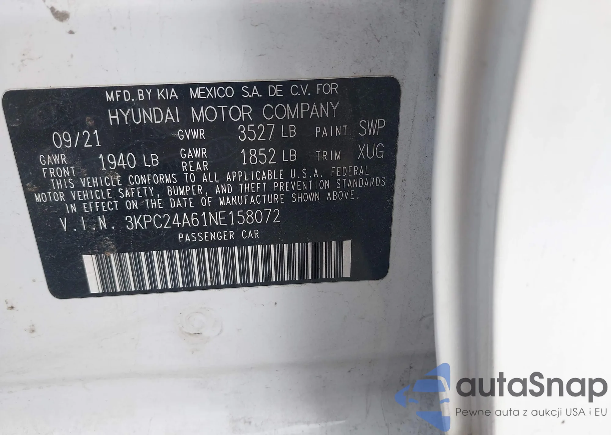 • VIN 3KPC24A61NE158072