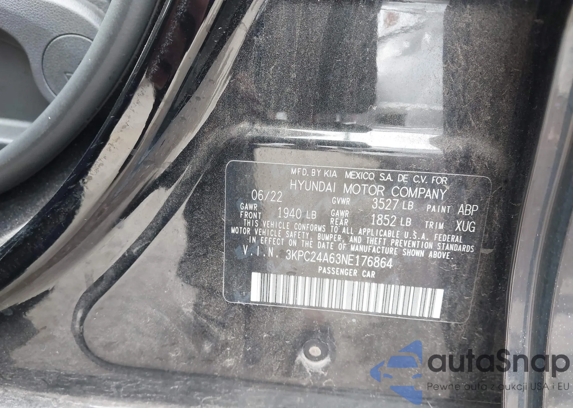 • VIN 3KPC24A63NE176864