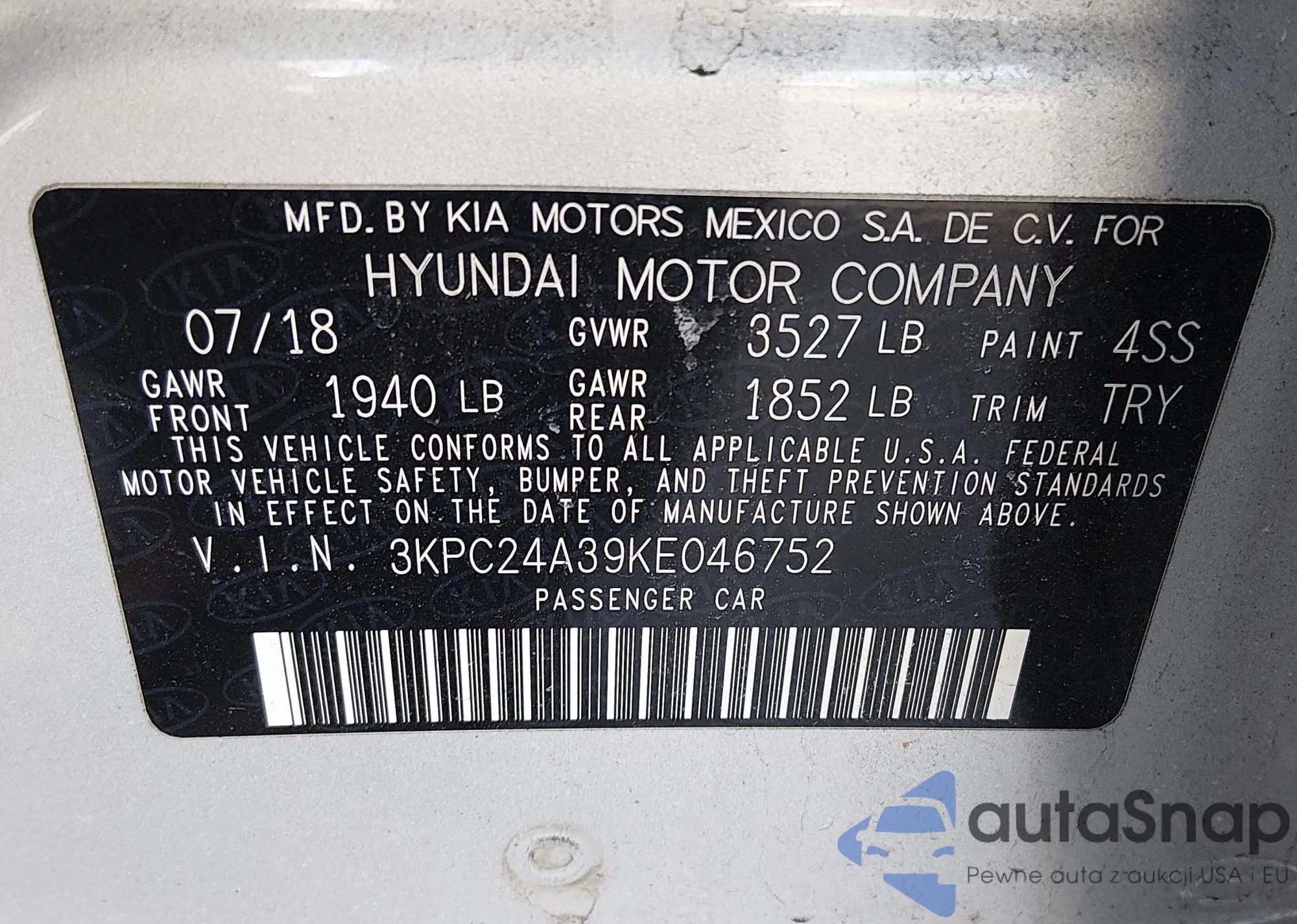 • VIN 3KPC24A39KE046752