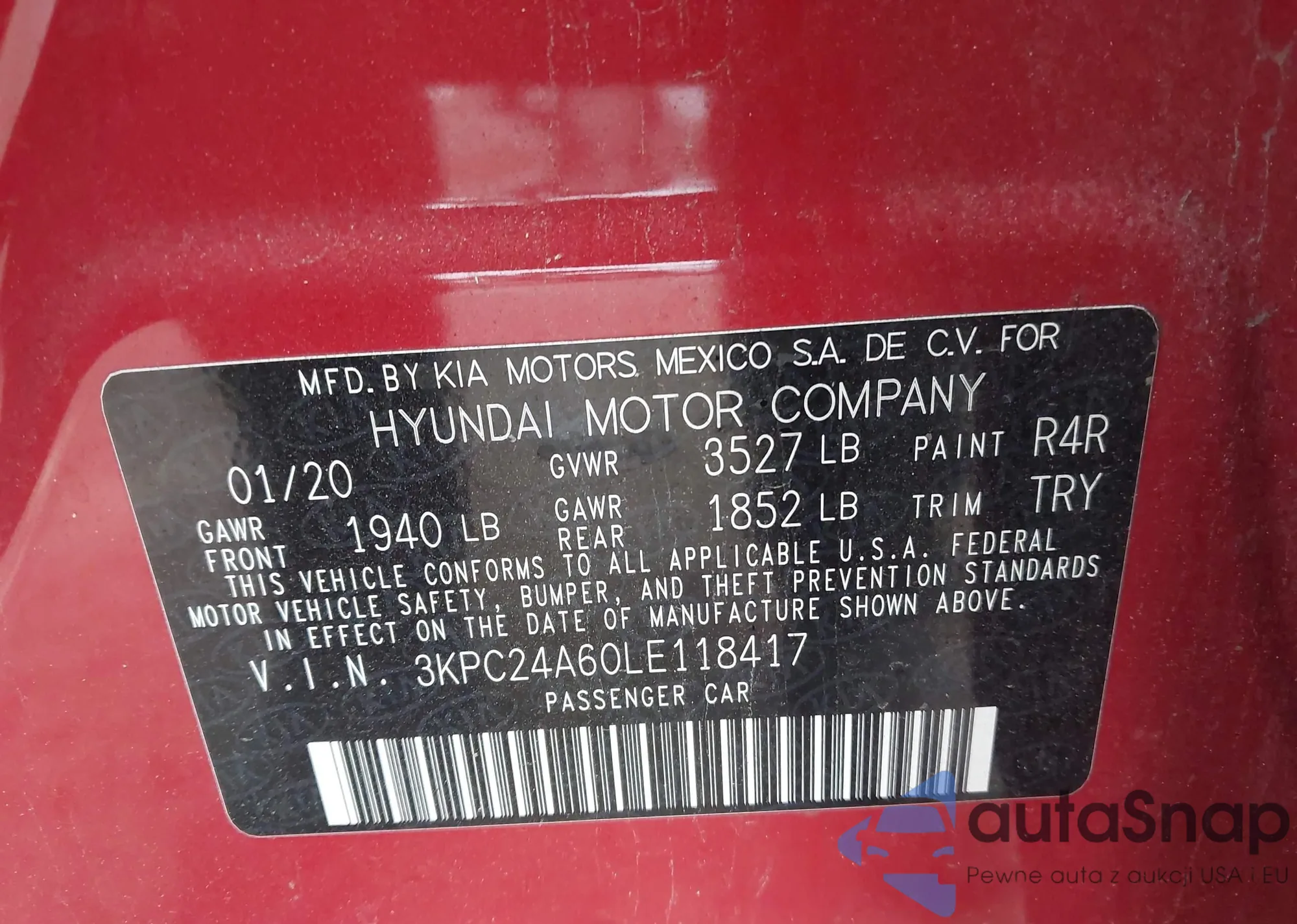 • VIN 3KPC24A60LE118417