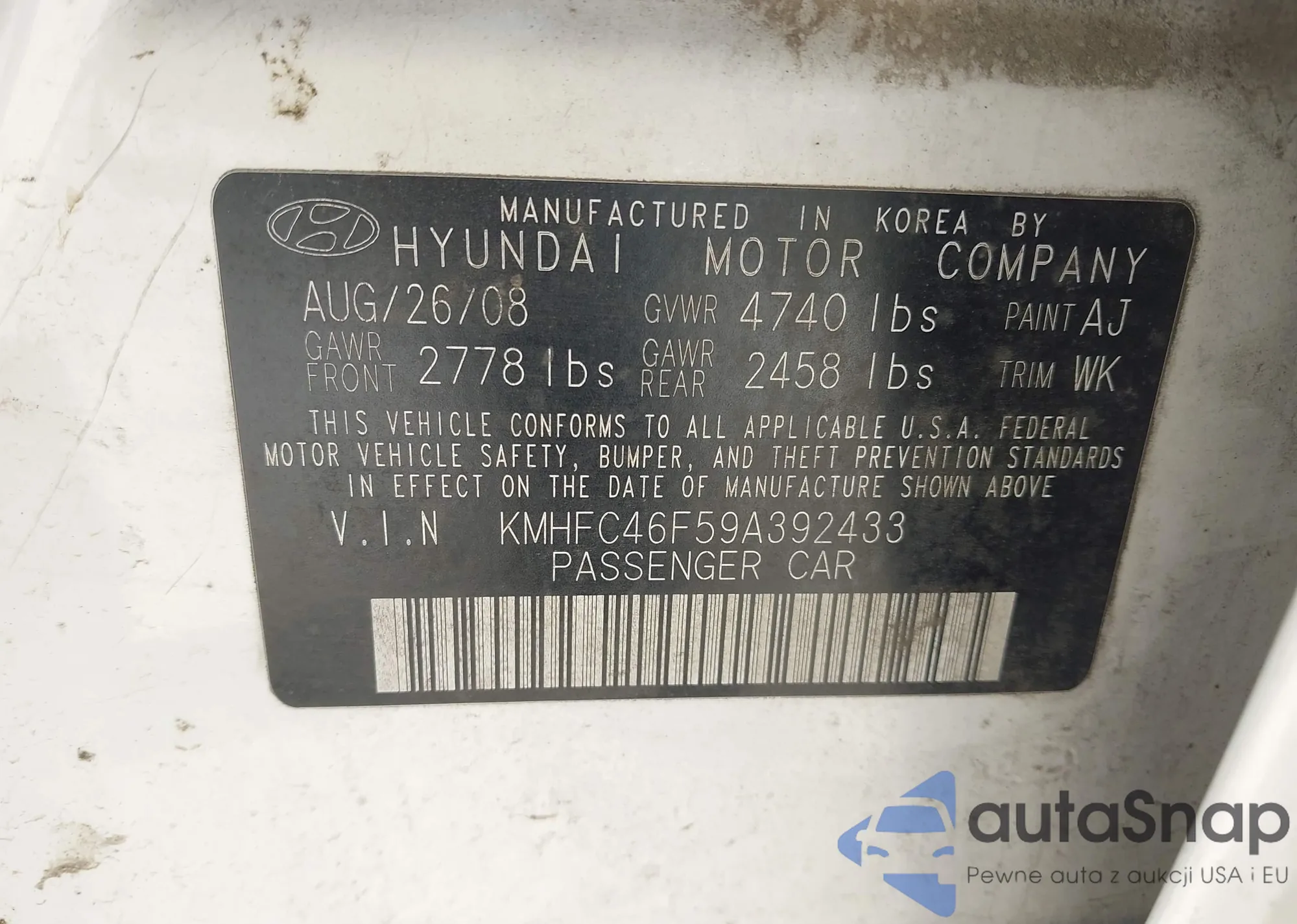 LOT: 44586702 VIN: KMHFC46F59A392433
