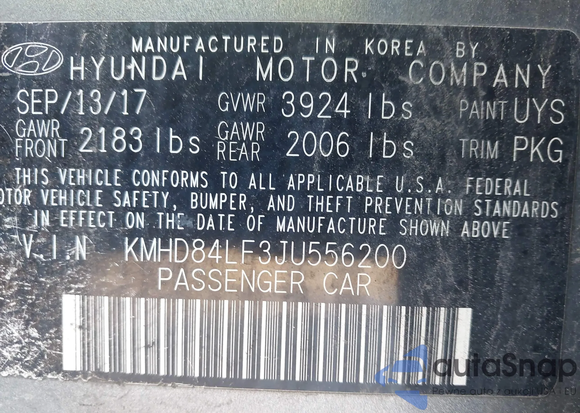 LOT: 44015436 VIN: KMHD84LF3JU556200