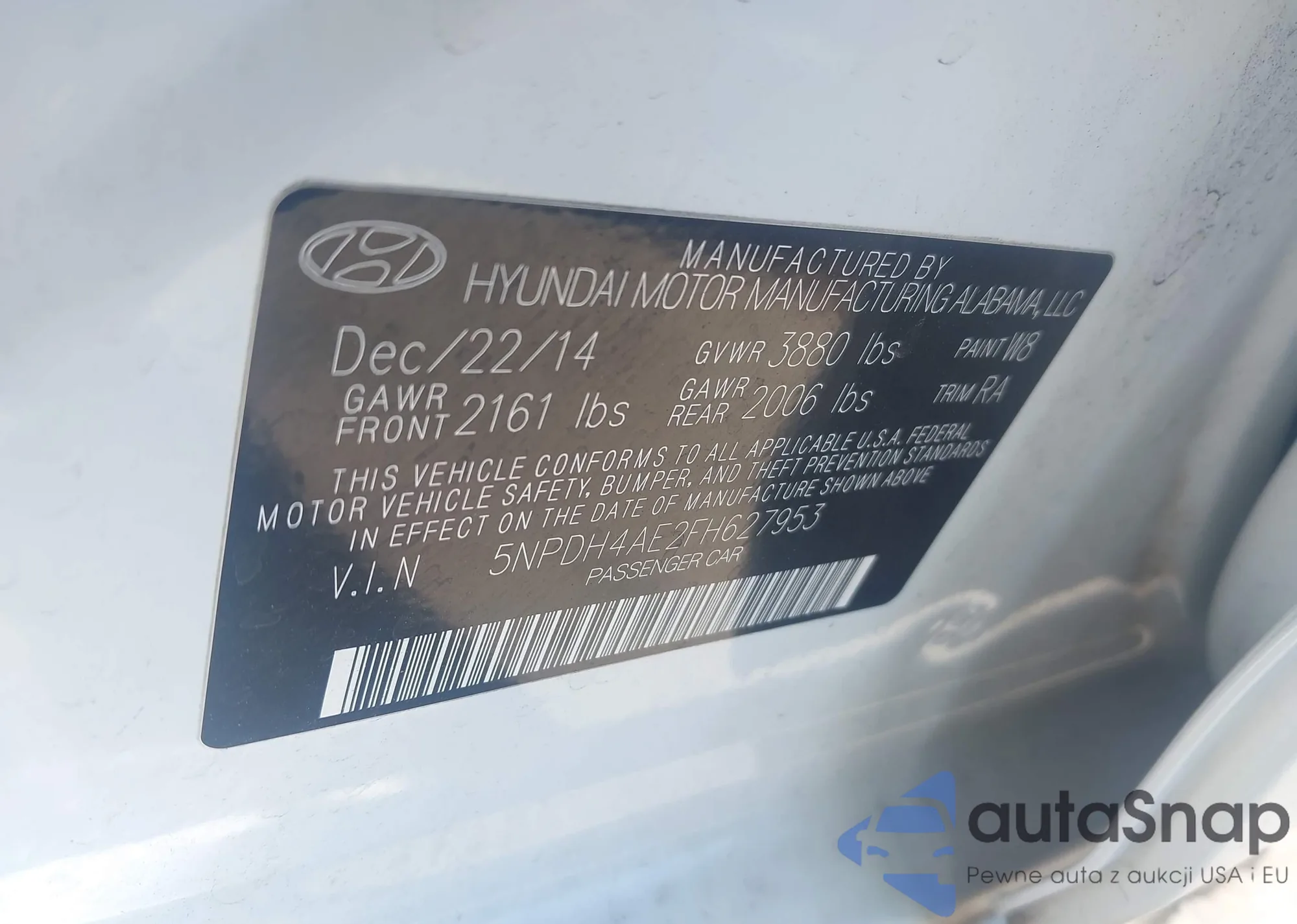 LOT: 44304945 VIN: 5NPDH4AE2FH627953