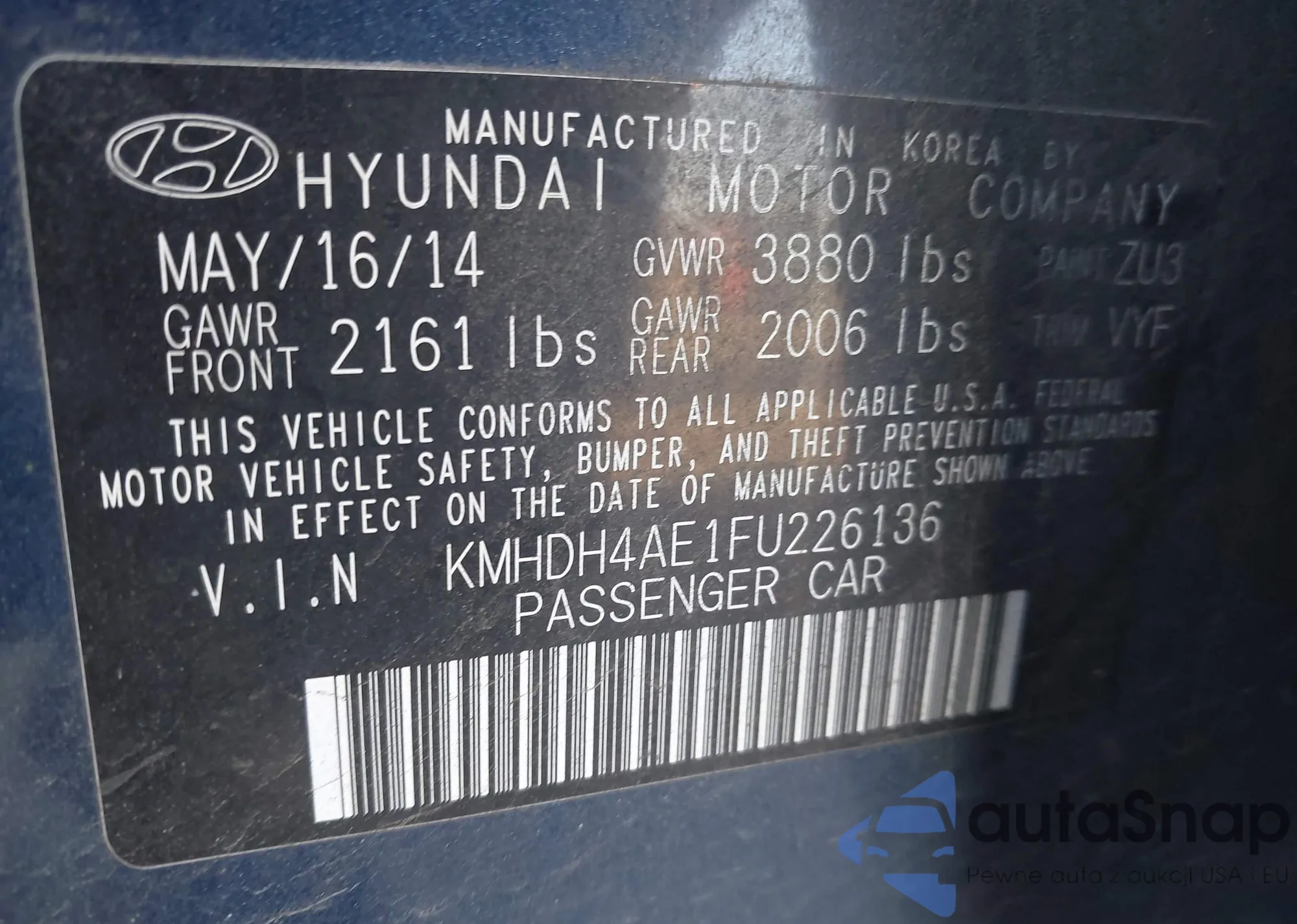 LOT: 44304987 VIN: KMHDH4AE1FU226136