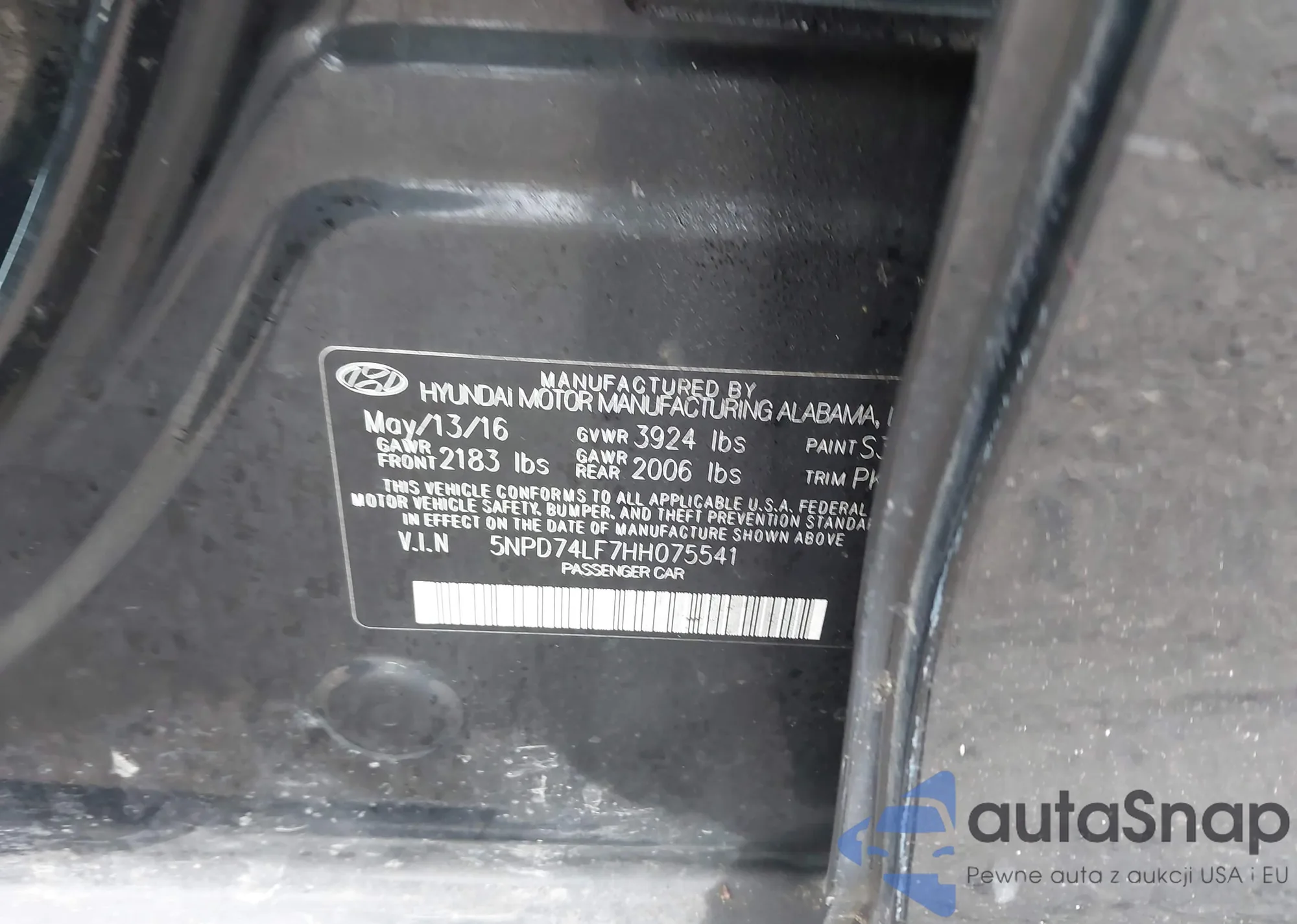 • VIN 5NPD74LF7HH075541
