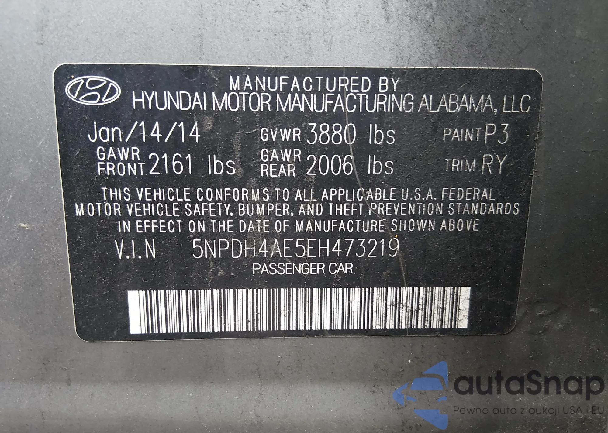 • VIN 5NPDH4AE5EH473219