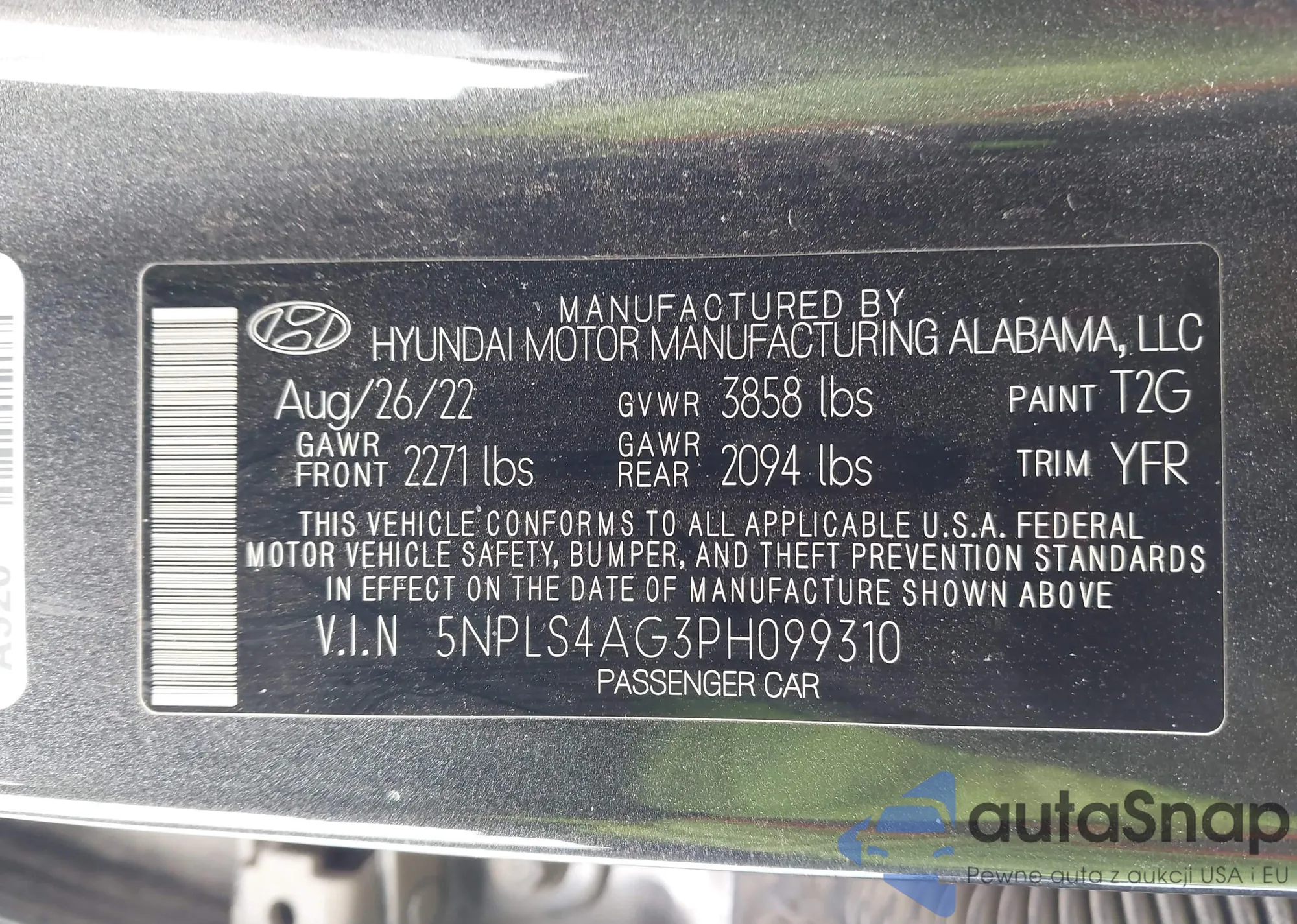 • VIN 5NPLS4AG3PH099310