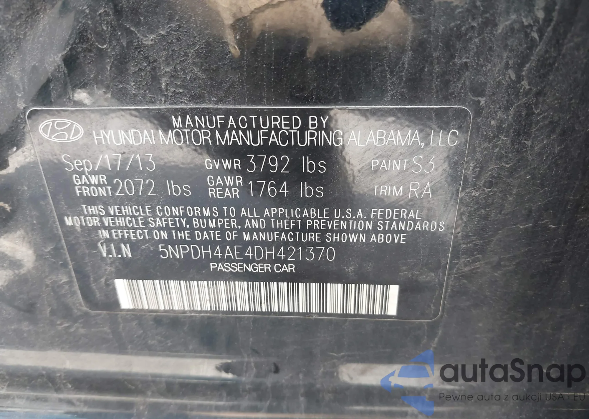 • VIN 5NPDH4AE4DH421370