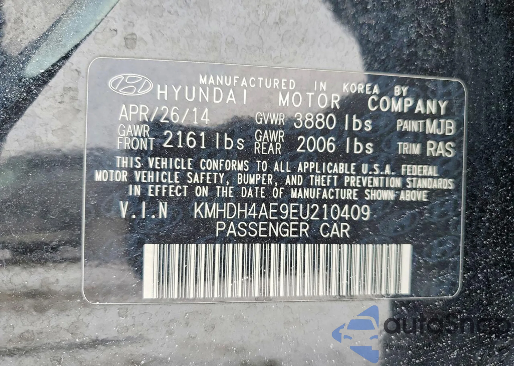 • VIN KMHDH4AE9EU210409