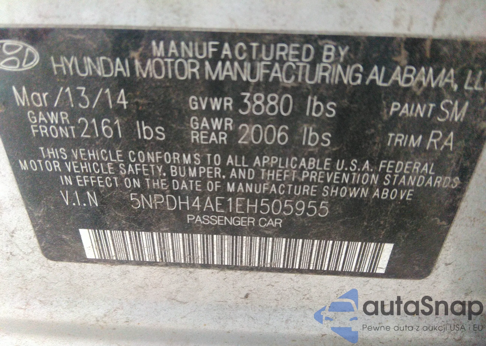 • VIN 5NPDH4AE1EH505955
