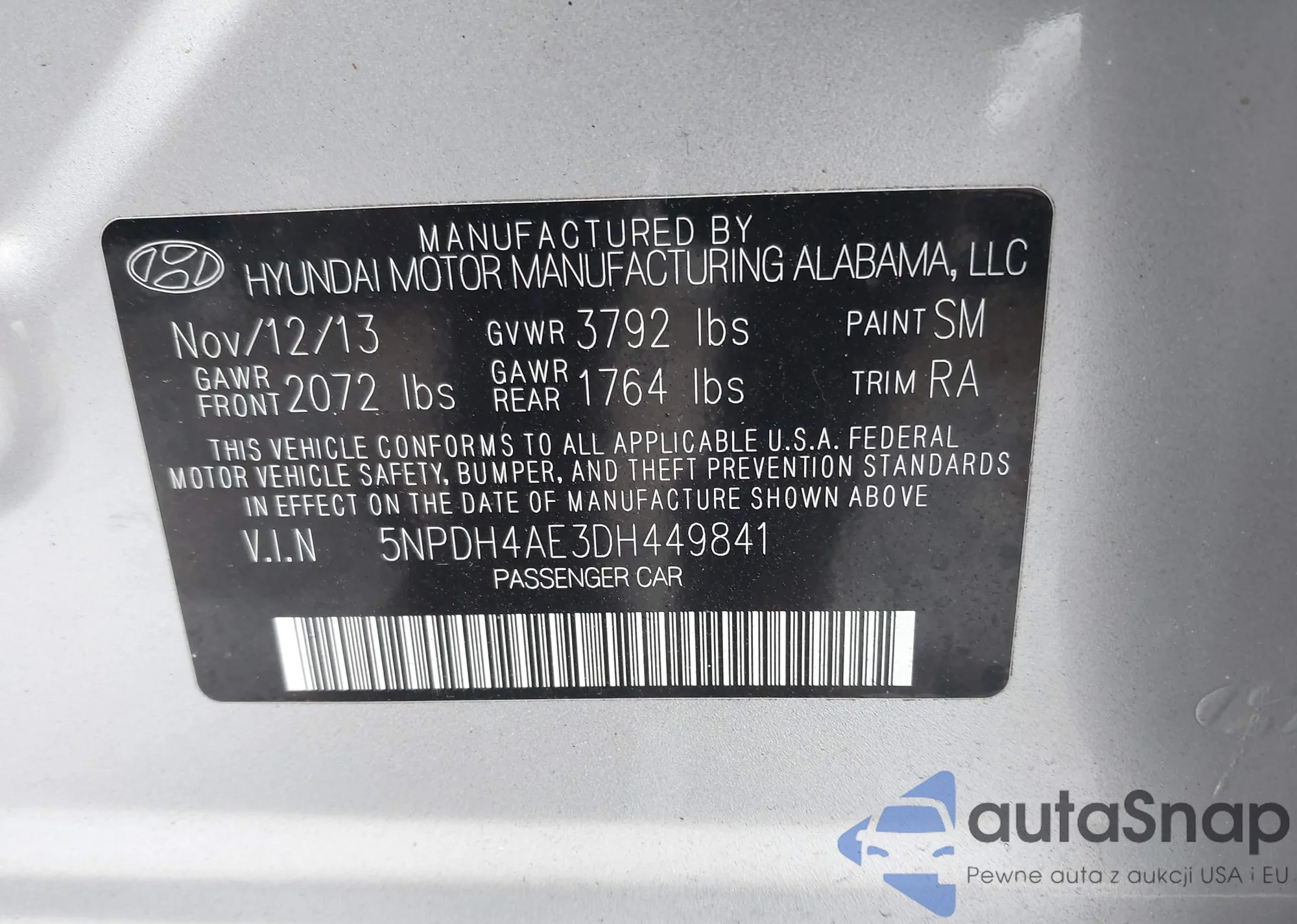 • VIN 5NPDH4AE3DH449841