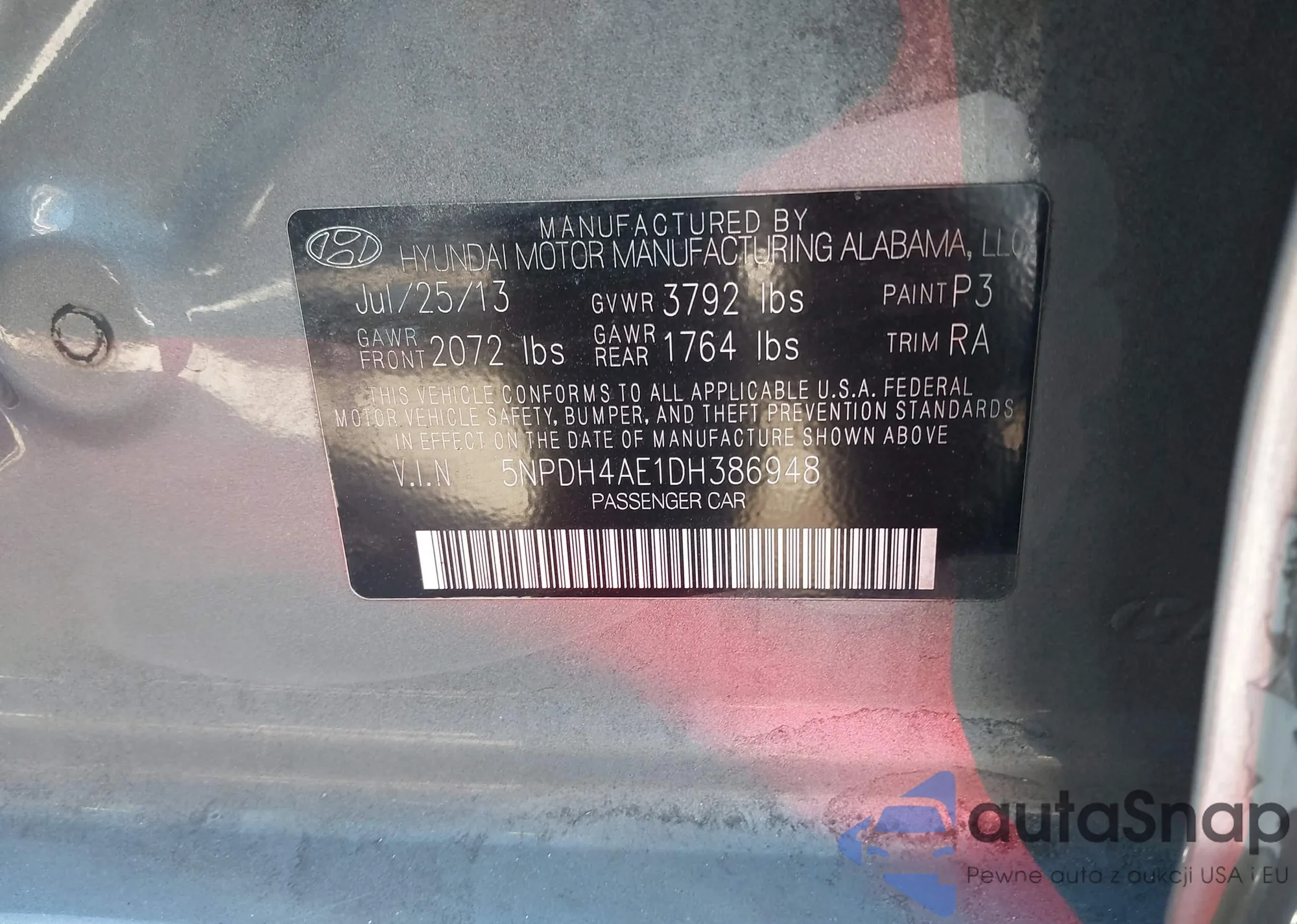 • VIN 5NPDH4AE1DH386948