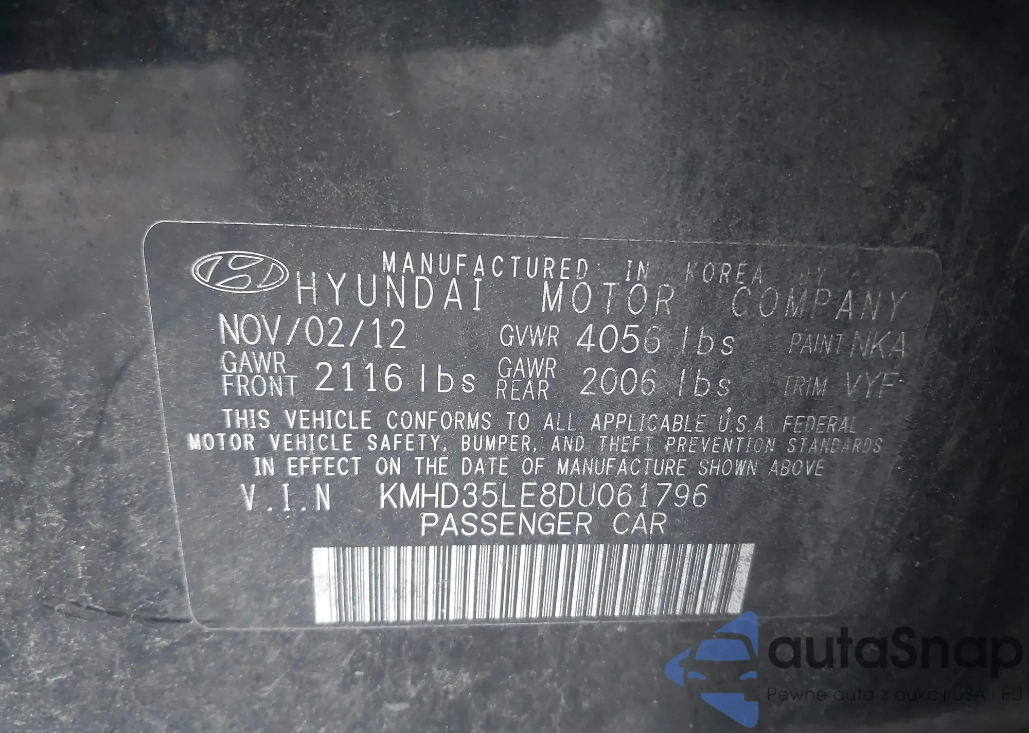 • VIN KMHD35LE8DU061796