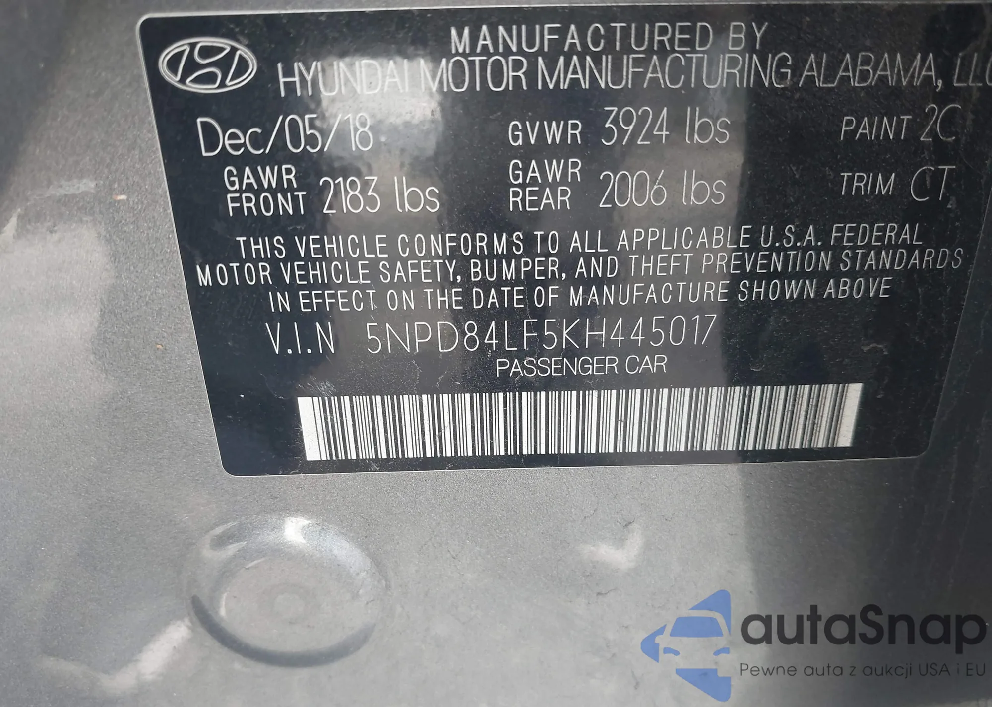 • VIN 5NPD84LF5KH445017