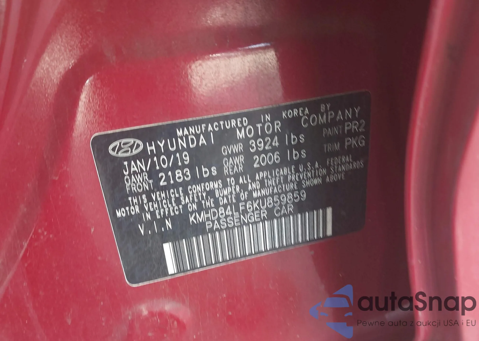 LOT: 44418234 VIN: KMHD84LF6KU859859