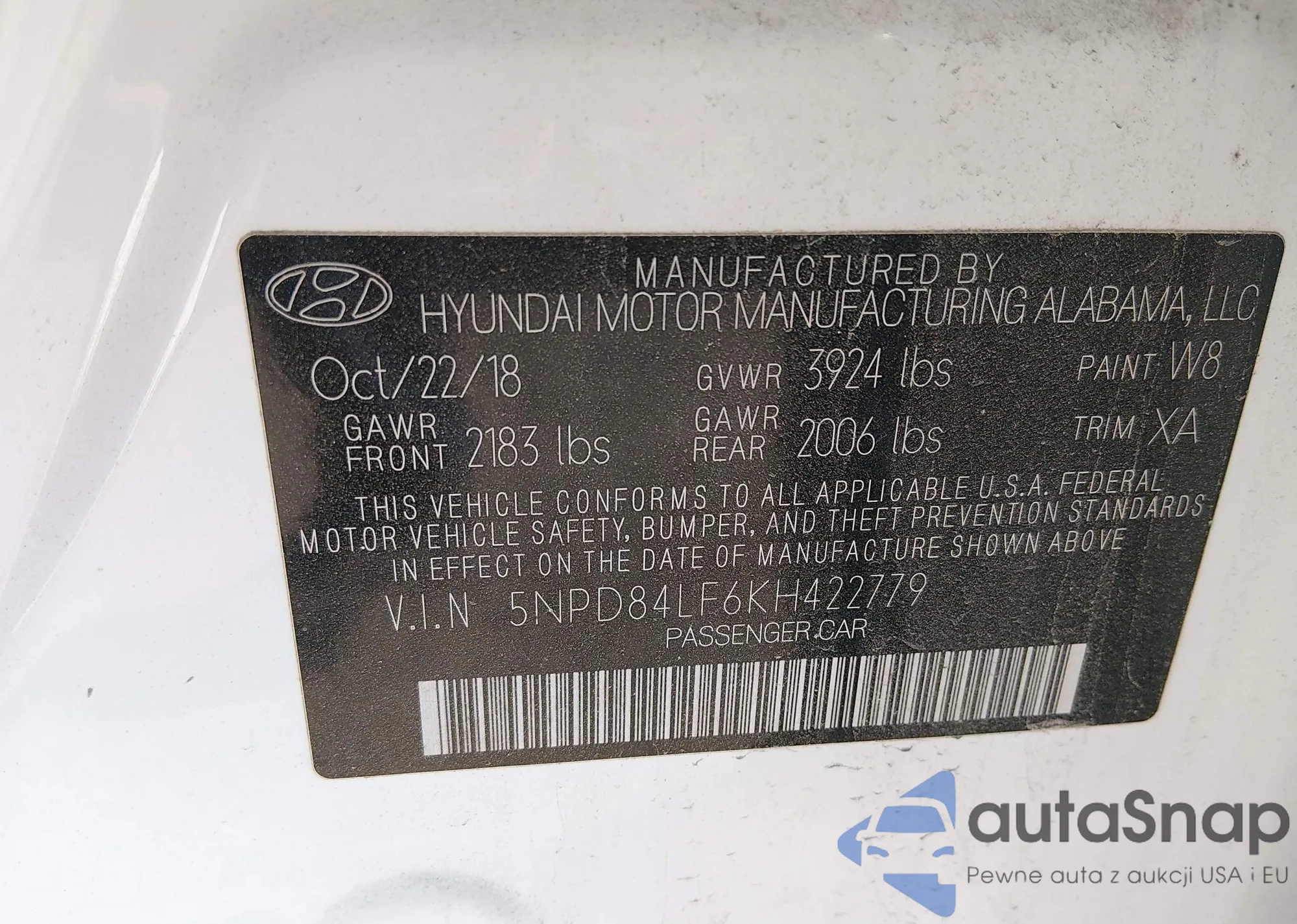 • VIN 5NPD84LF6KH422779