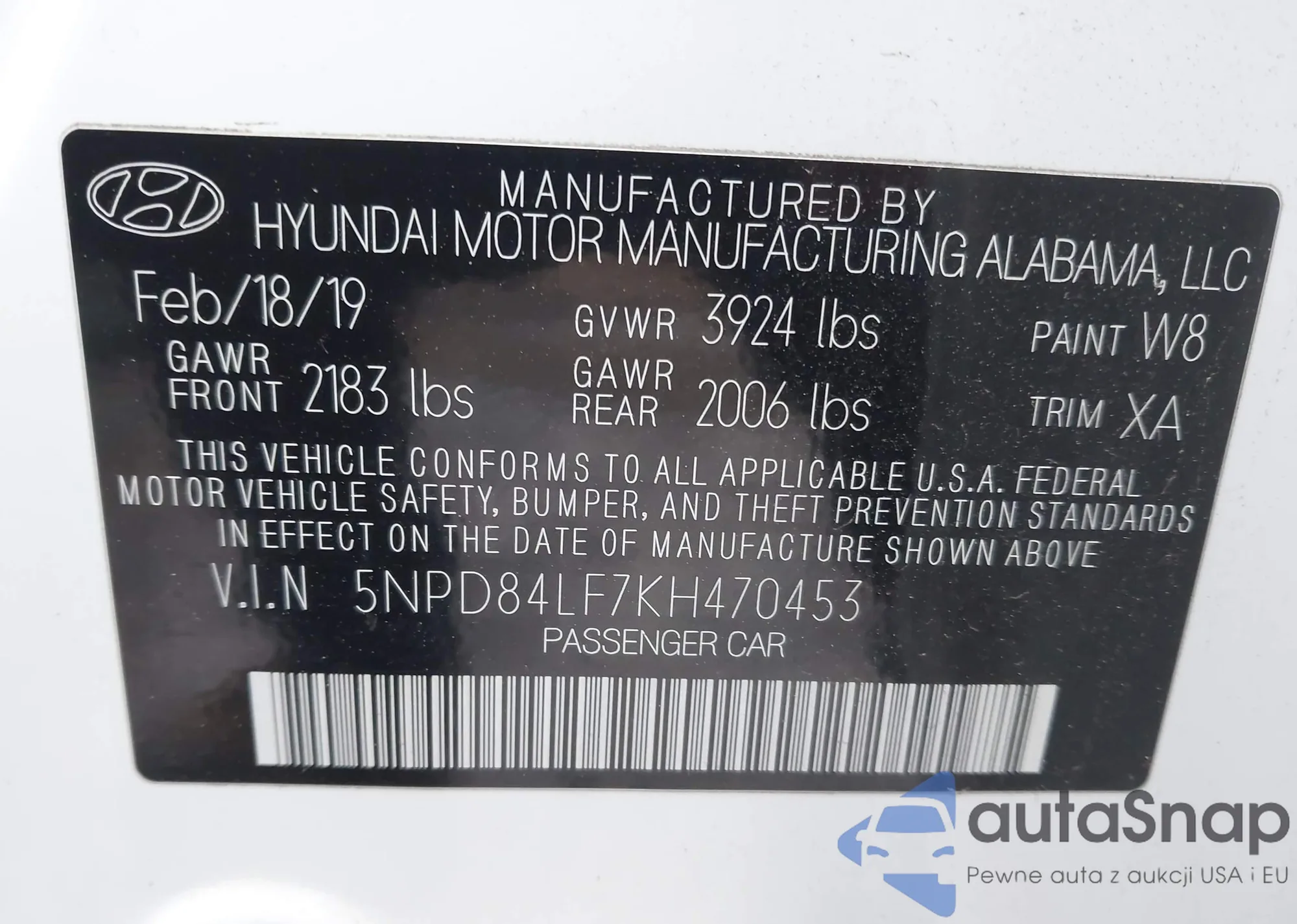• VIN 5NPD84LF7KH470453