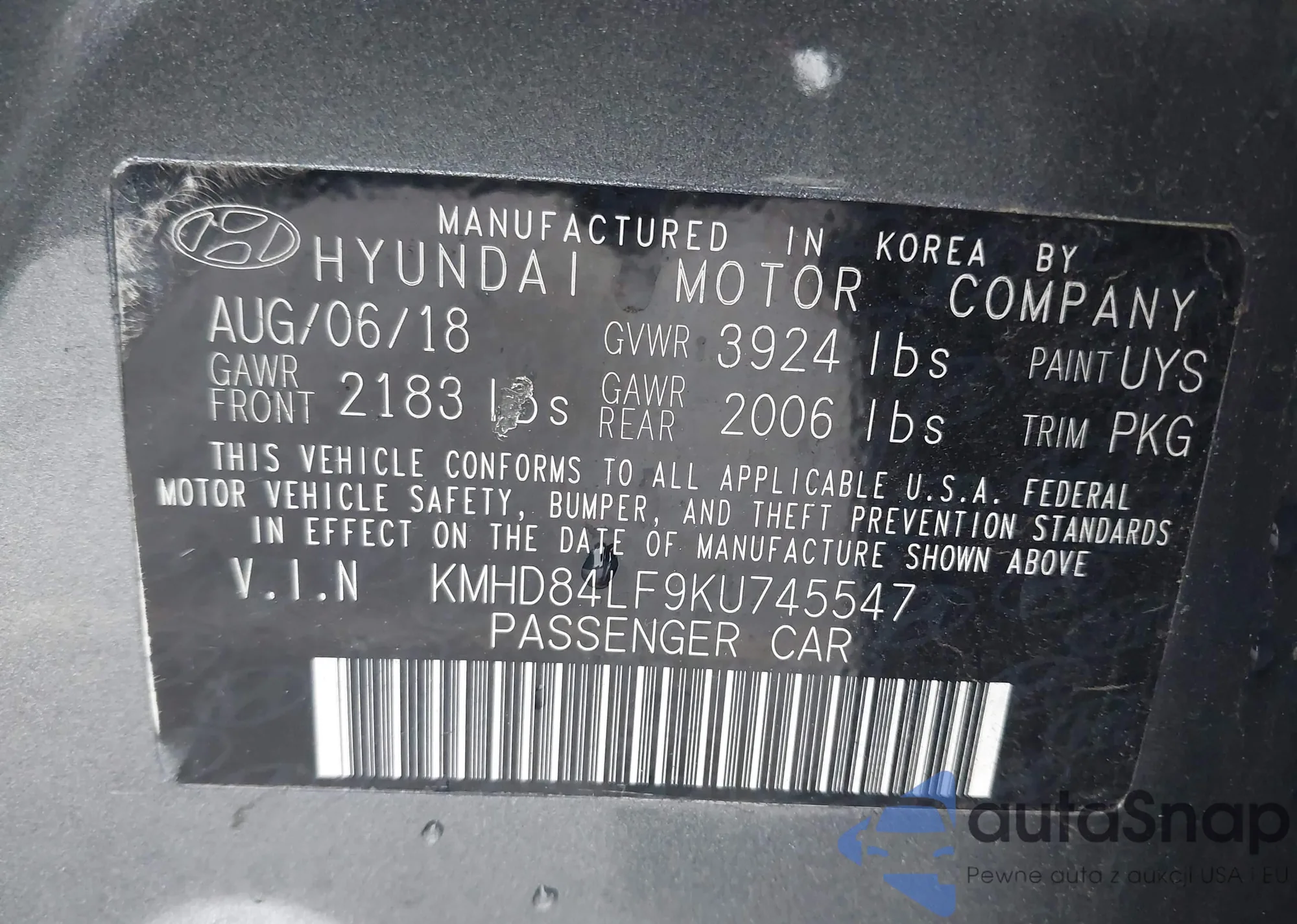 • VIN KMHD84LF9KU745547