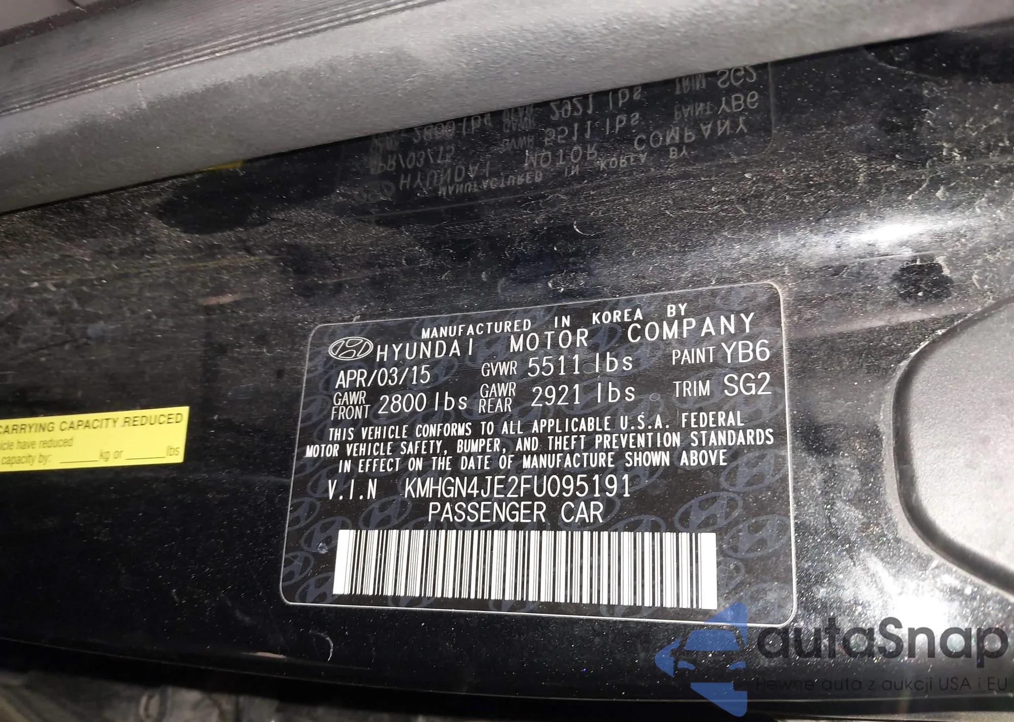 LOT: 44509866 VIN: KMHGN4JE2FU095191