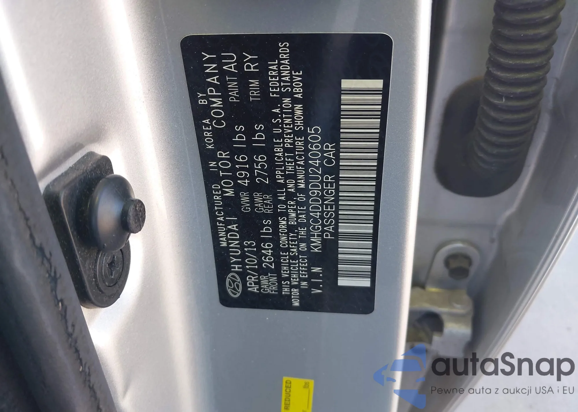 LOT: 44164674 VIN: KMHGC4DD9DU240605