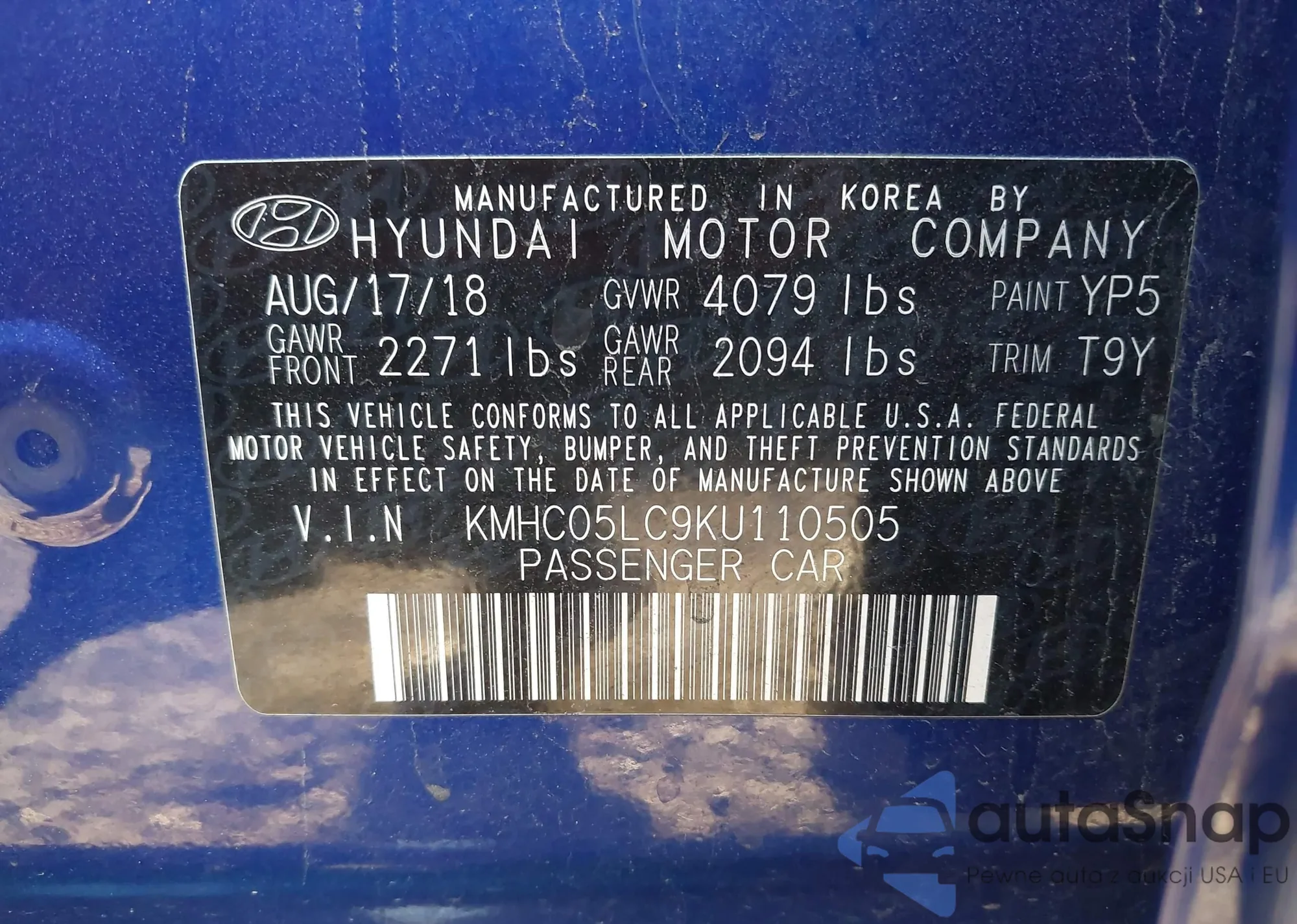 • VIN KMHC05LC9KU110505