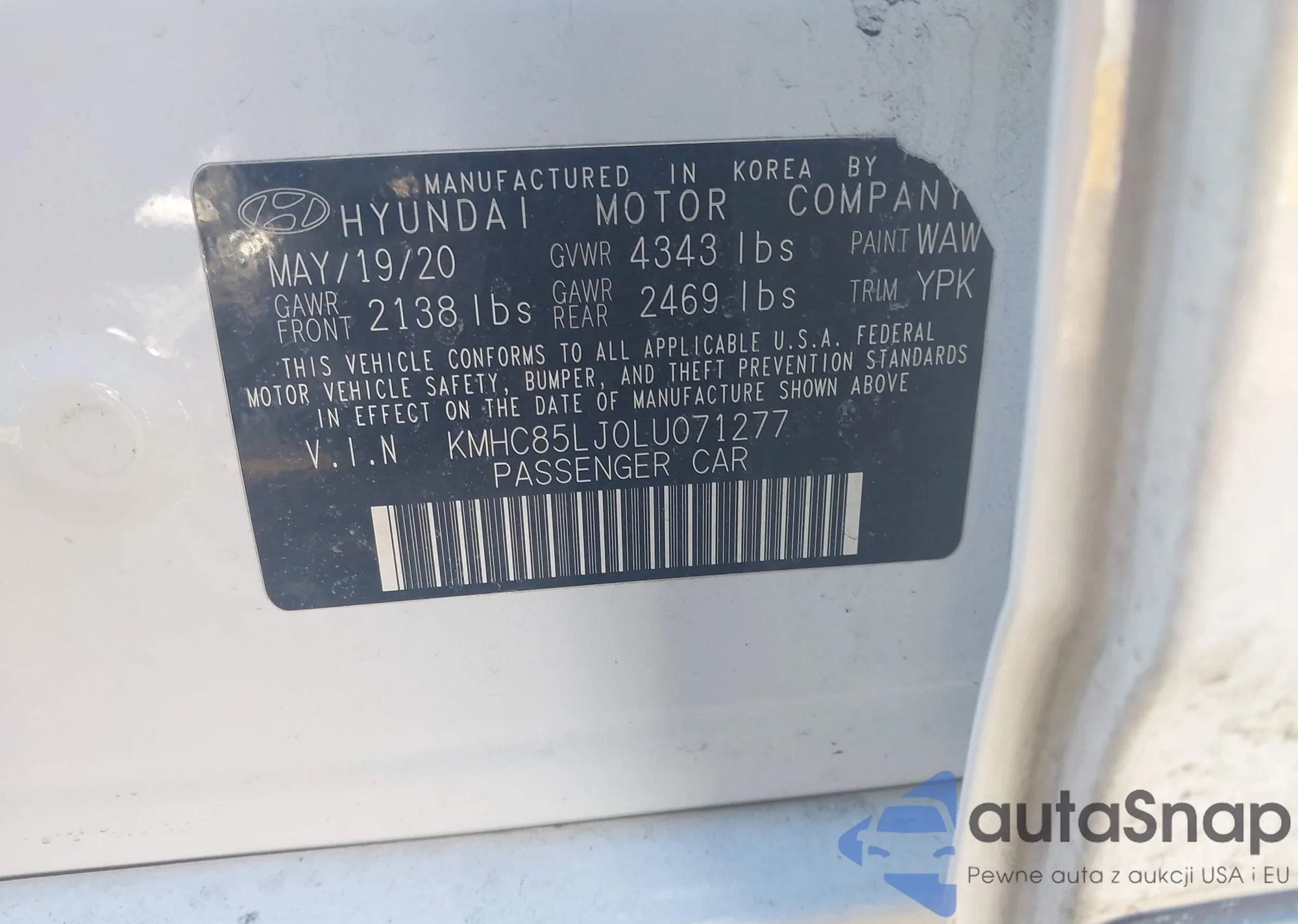 LOT: 44392890 VIN: KMHC85LJ0LU071277