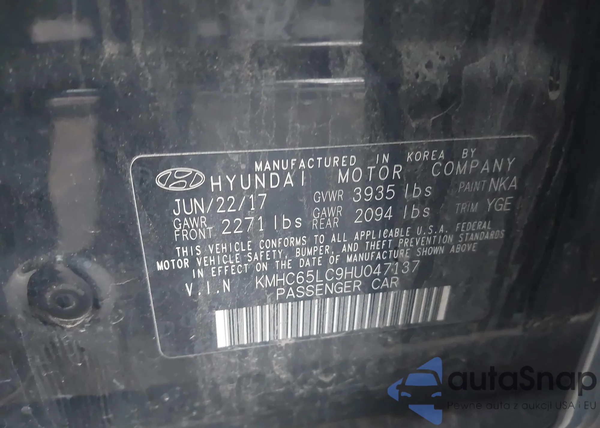 • VIN KMHC65LC9HU047137