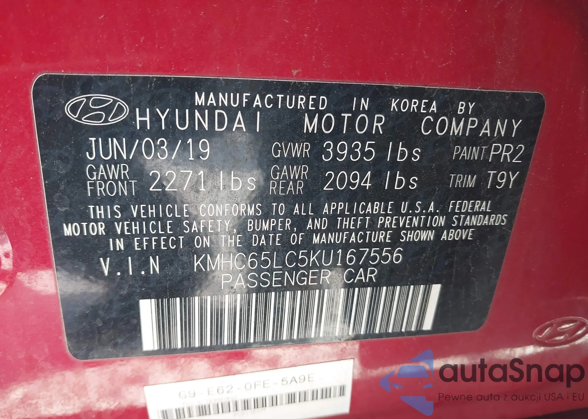 LOT: 44054855 VIN: KMHC65LC5KU167556