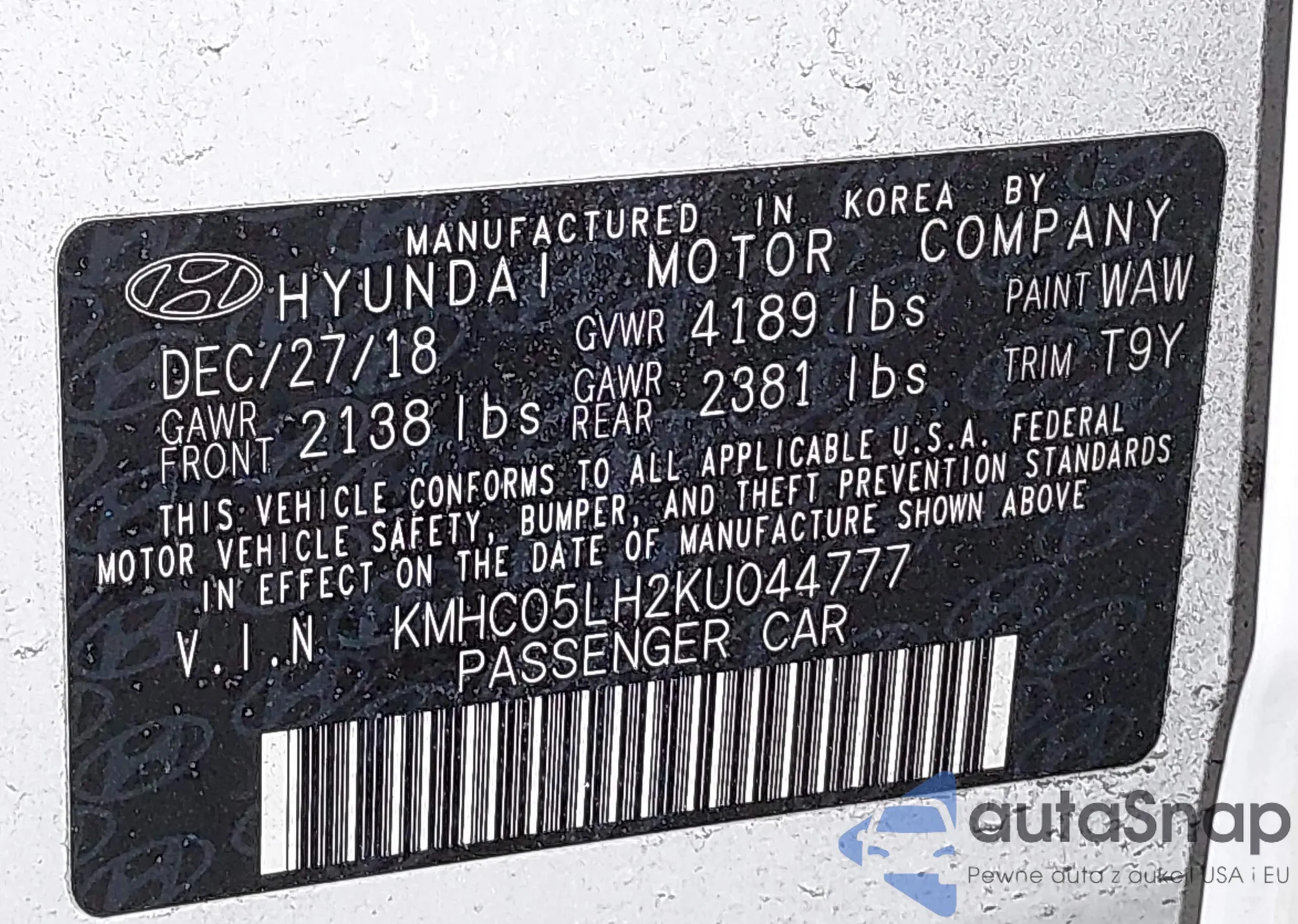 LOT: 44065283 VIN: KMHC05LH2KU044777