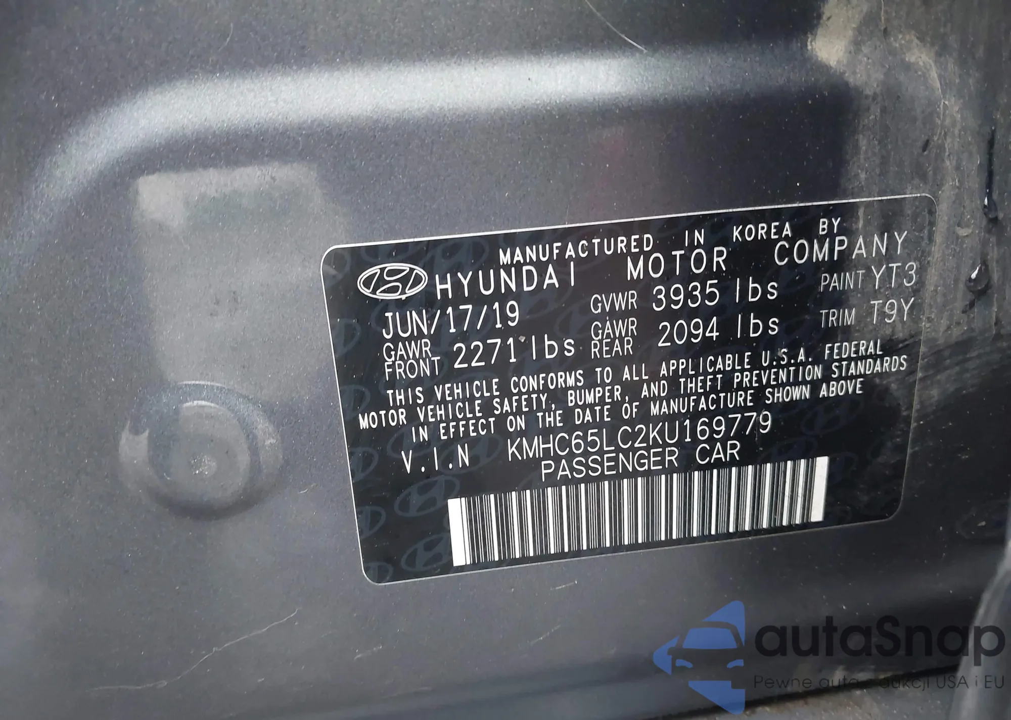LOT: 44072204 VIN: KMHC65LC2KU169779