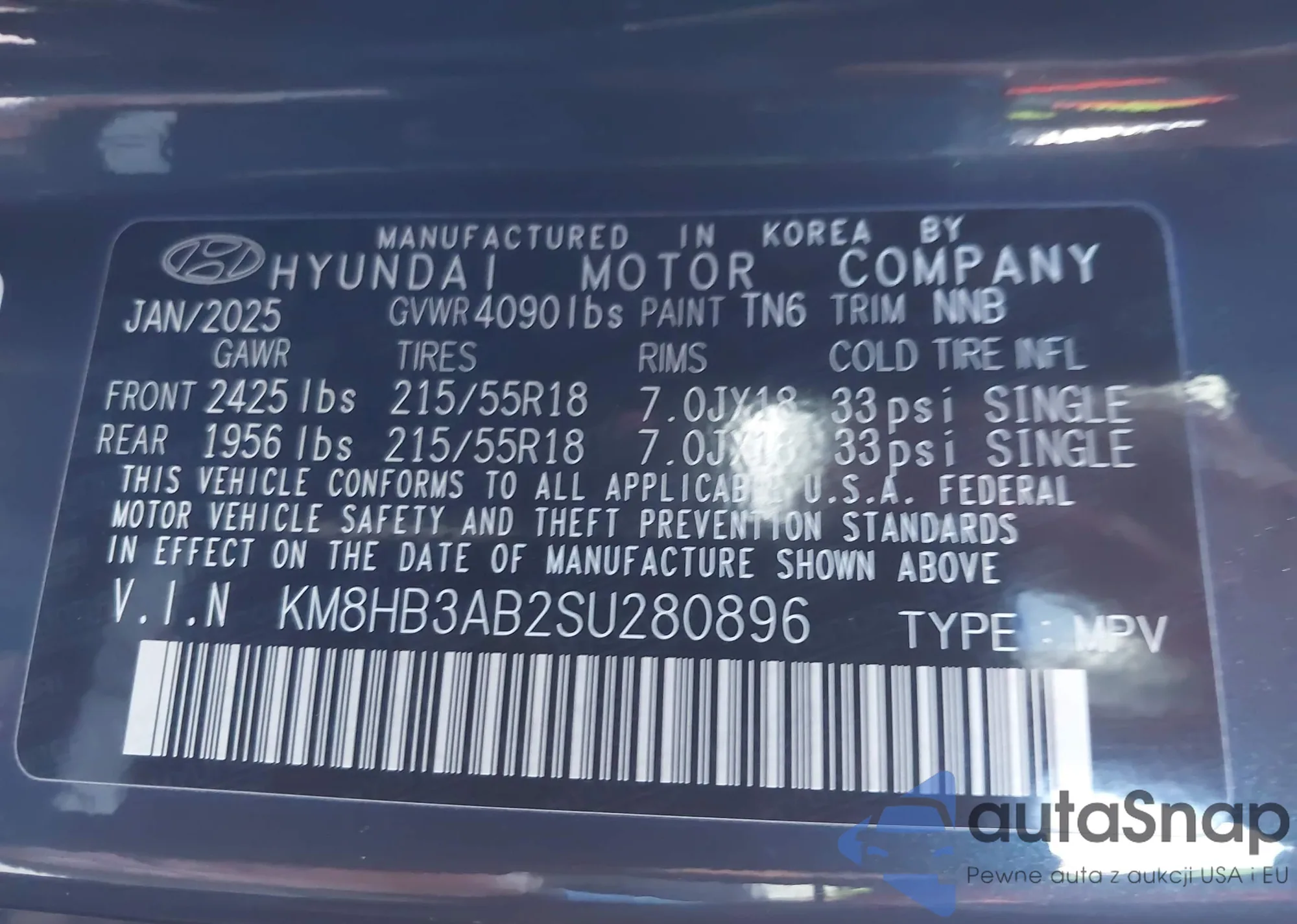 • VIN KM8HB3AB2SU280896