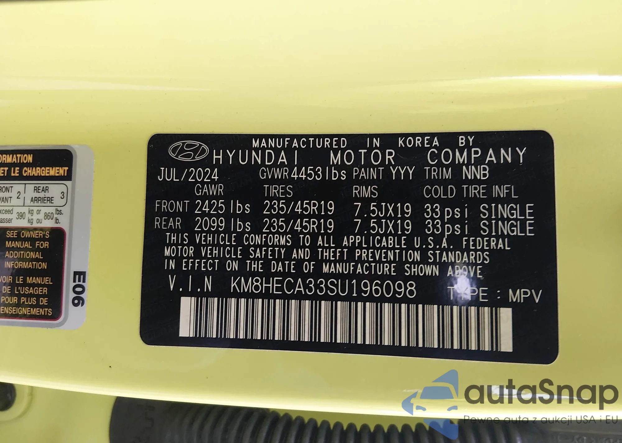 LOT: 44149499 VIN: KM8HECA33SU196098