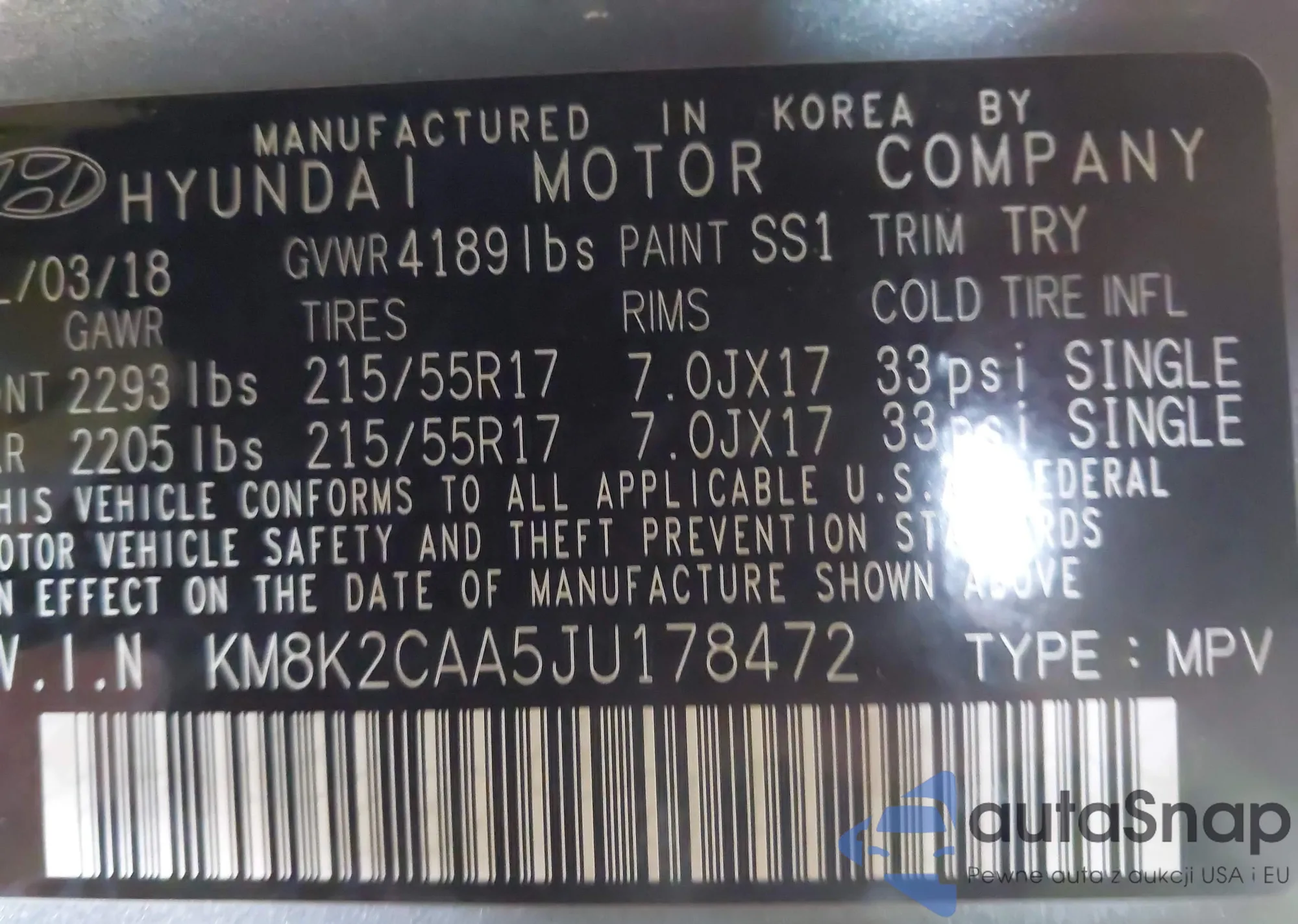• VIN KM8K2CAA5JU178472