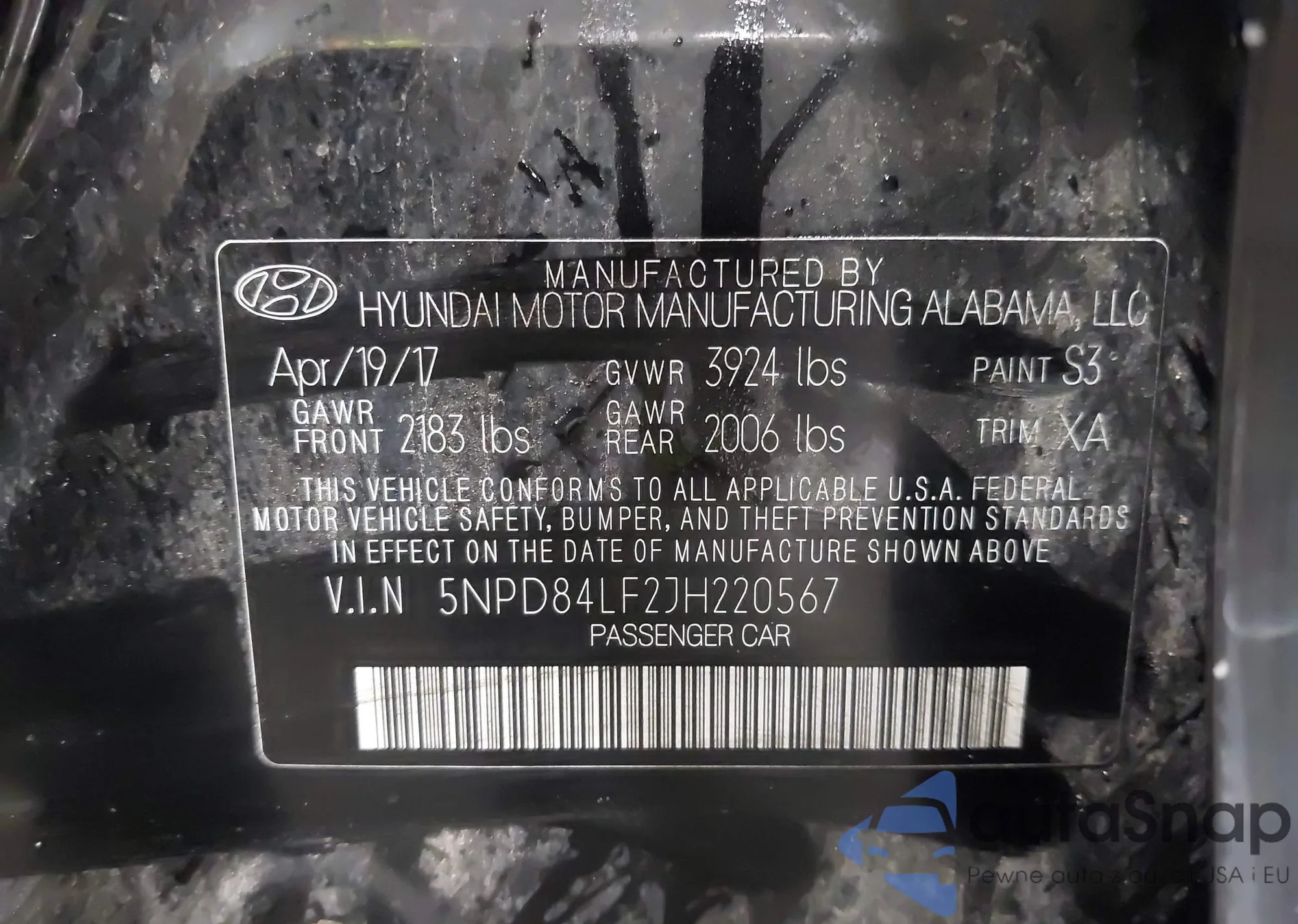 • VIN 5NPE24AF7JH679215