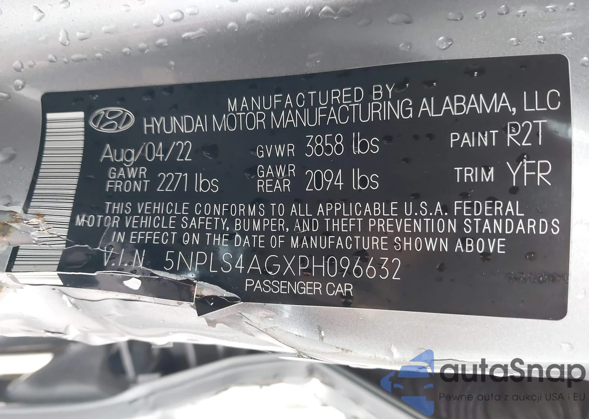 LOT: 44059894 VIN: 5NPLS4AGXPH096632