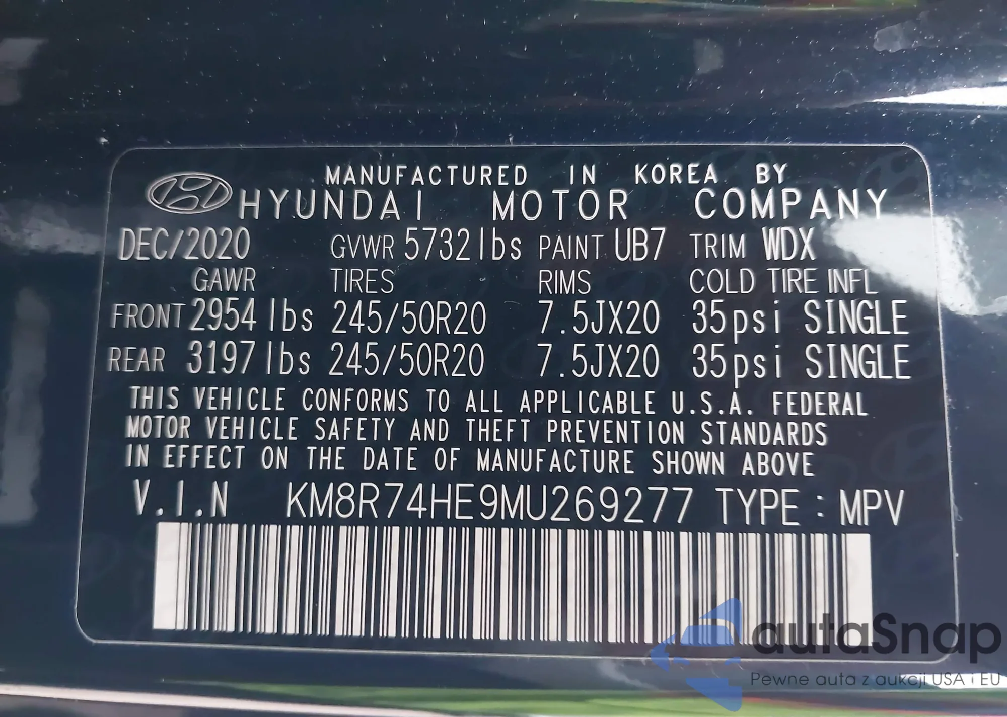 • VIN KM8R74HE9MU269277