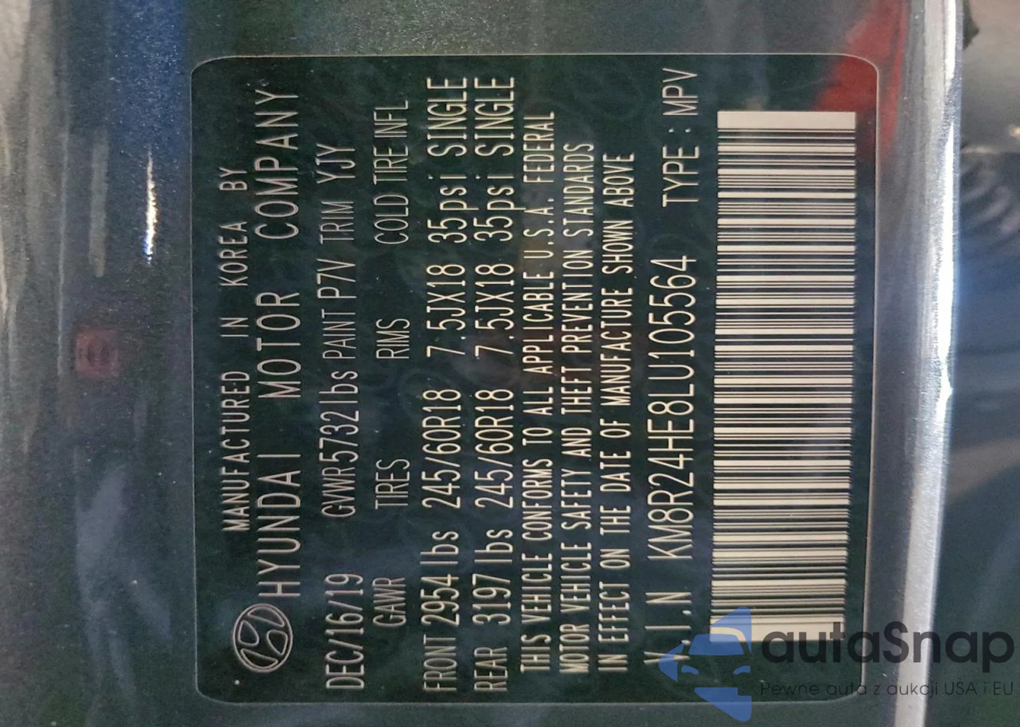 • VIN KM8R24HE8LU105564