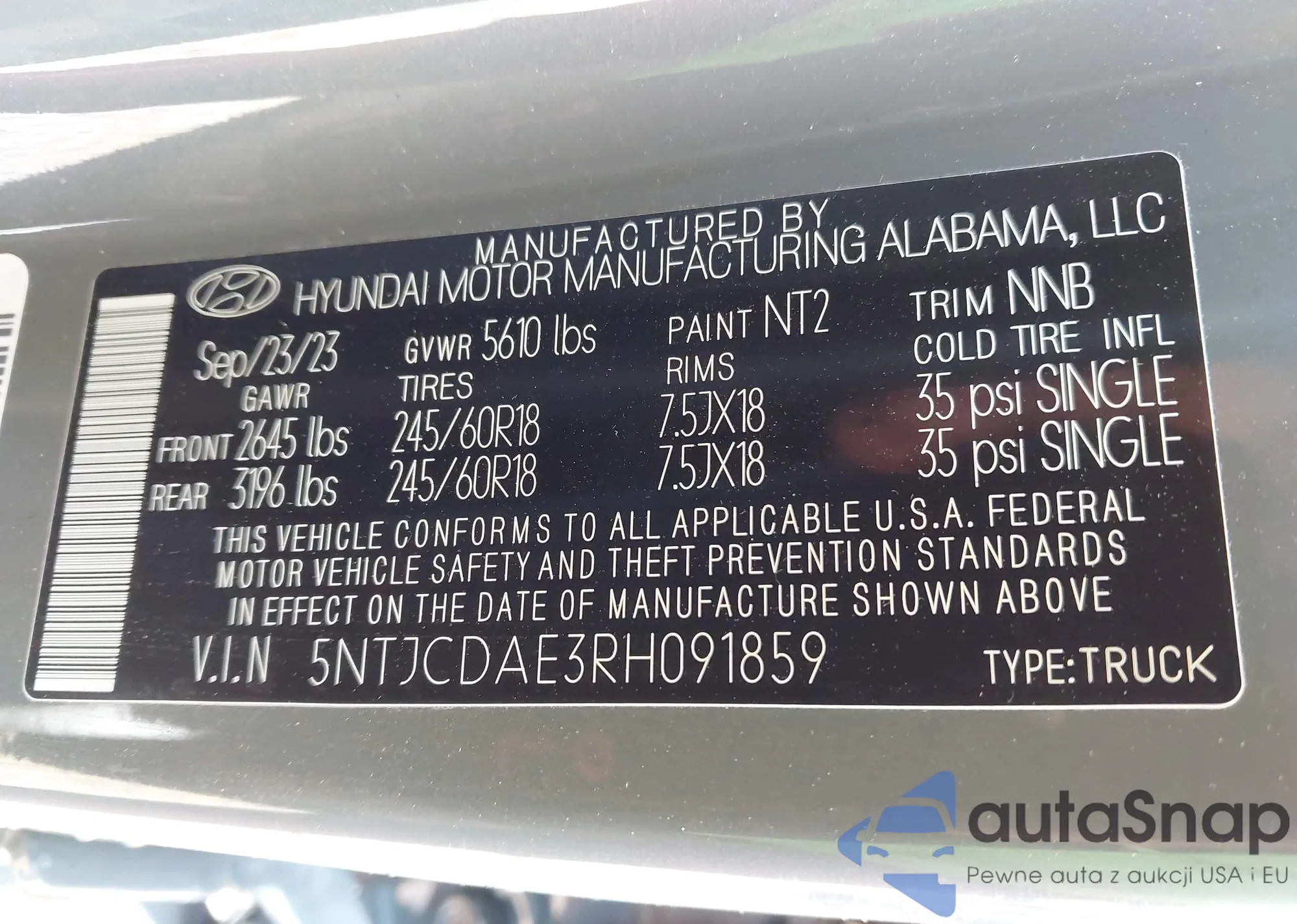• VIN 5NTJCDAE3RH091859