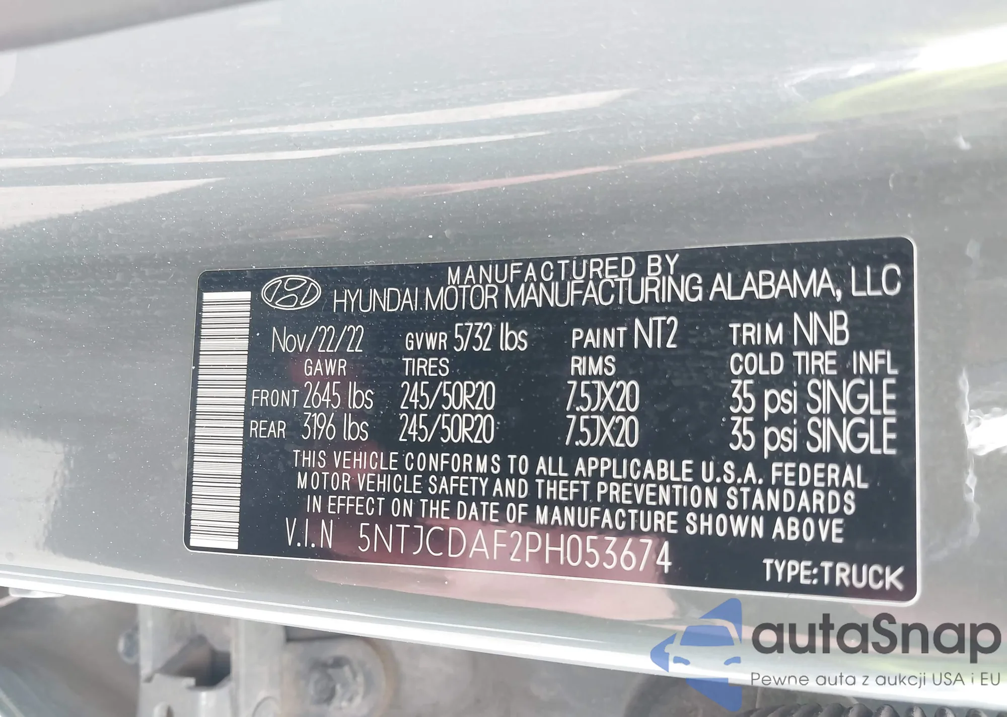 • VIN 5NTJCDAF2PH053674