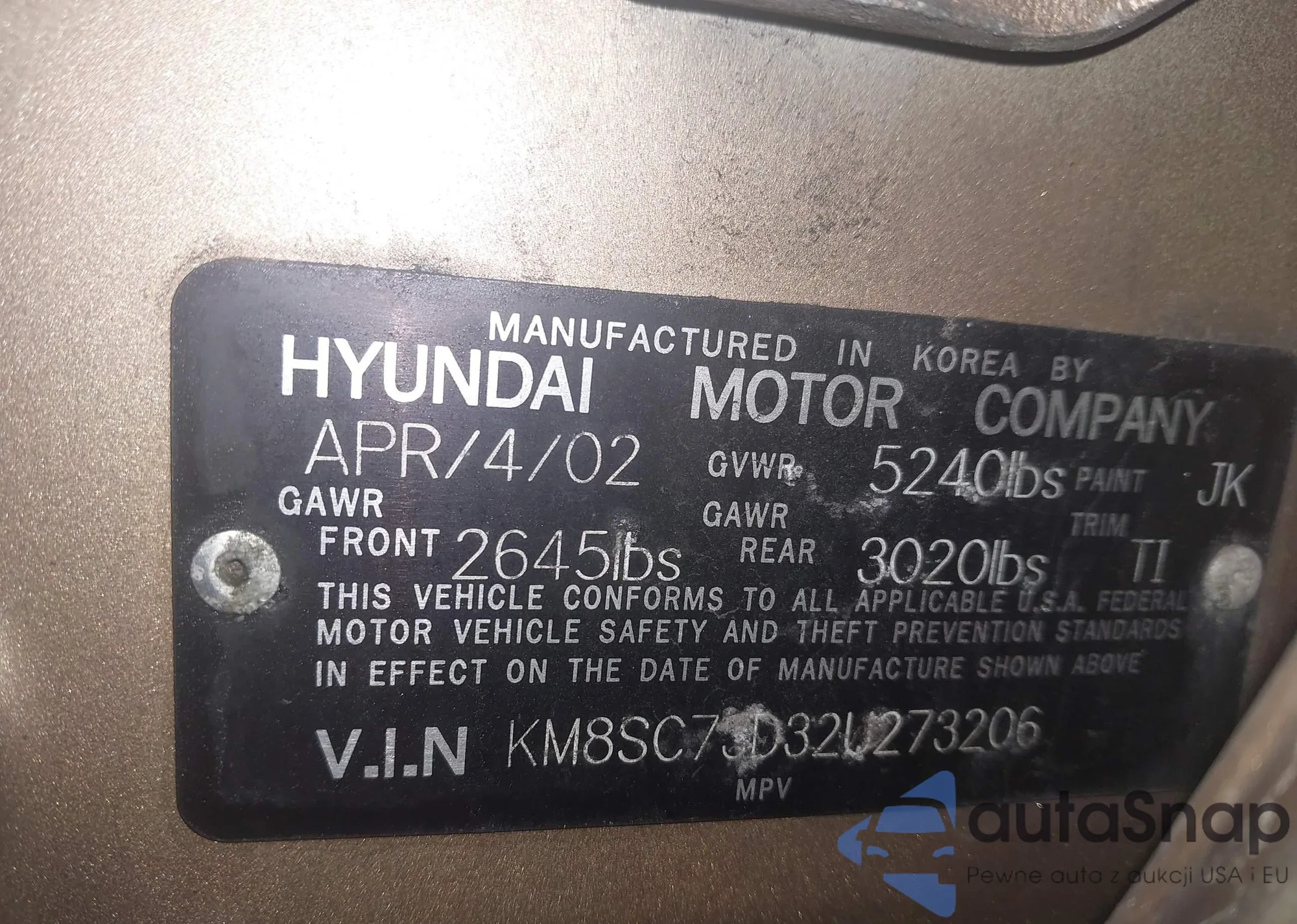 LOT: 44115994 VIN: KM8SB12B54U650069