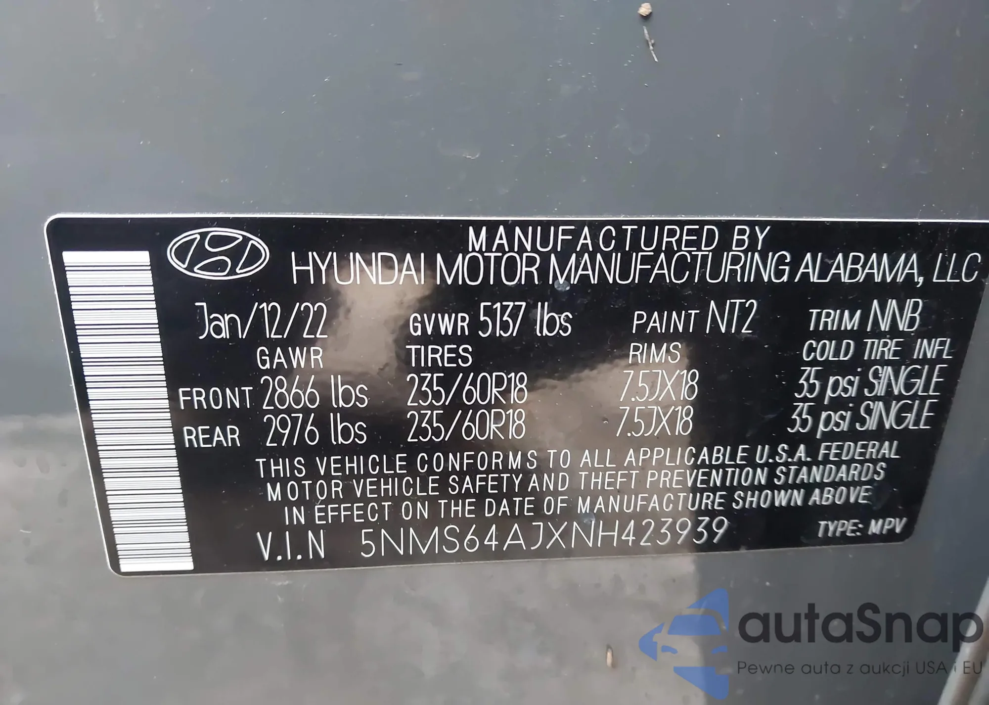 • VIN 5NMS64AJXNH423939