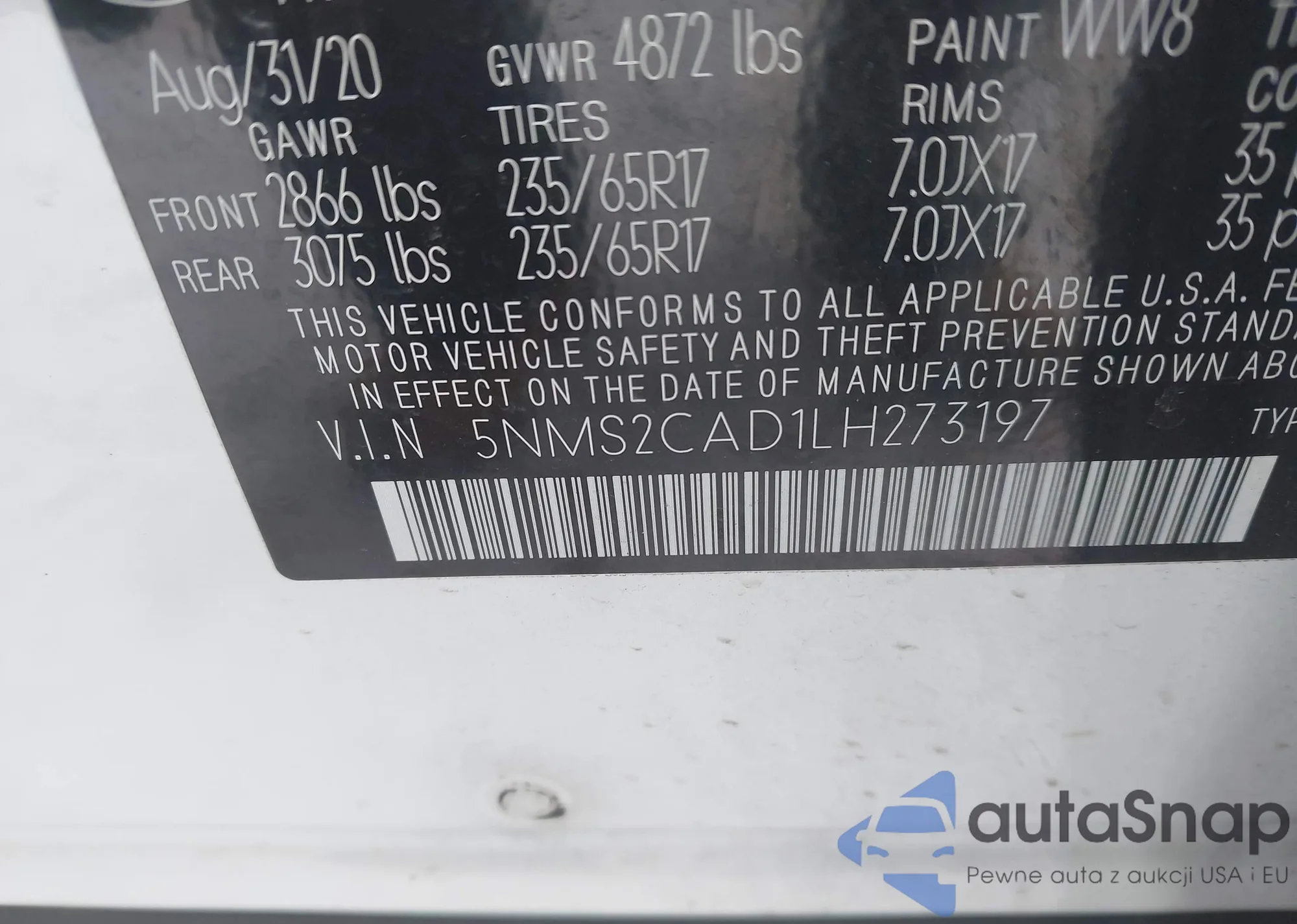 • VIN 5NMS3CAD1LH304669